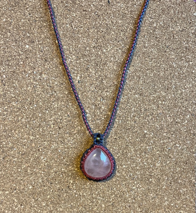マクラメ天然石ネックレス ローズクォーツ【白桃】(RN002)国内送料無料