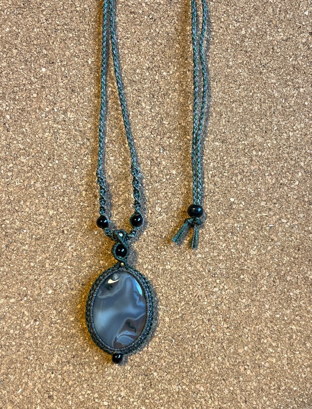 古代より「五徳(仁・義・礼・智・勇)を高める石」と言われています。 忍耐、調和、飛躍を表す鉱物とされ、素晴らしい人徳を与えてくれ、不安で落ちつかない夜にも効果を発揮し、持ち主に平和な眠りをもたらしてくれるよう製作しました! マクラメ天然石ネックレスは、自然の力を感じることができるパワーストーンジュエリーです。 マクラメ編みで一つ一つ手で編んでいます。 自然の力に触れながら、日々の生活をより豊かにするネックレス。 大切な人への贈り物、ご自身へのご褒美として最適です☆ 【商品詳細】 トップ部分:約26mm×19mm ネックレス紐:約60cm(調節可能) 紐色:エメラルドグリーン色×青色 【ご注意】 ※カメラによる色が実際の色とは多少異なります。 ※天然石のため、形状に多少の個体差がありますのでご了承ください。 ※装着後は汗や水分を拭き取り、保管する際は直射日光や高温多湿を避けてください。
