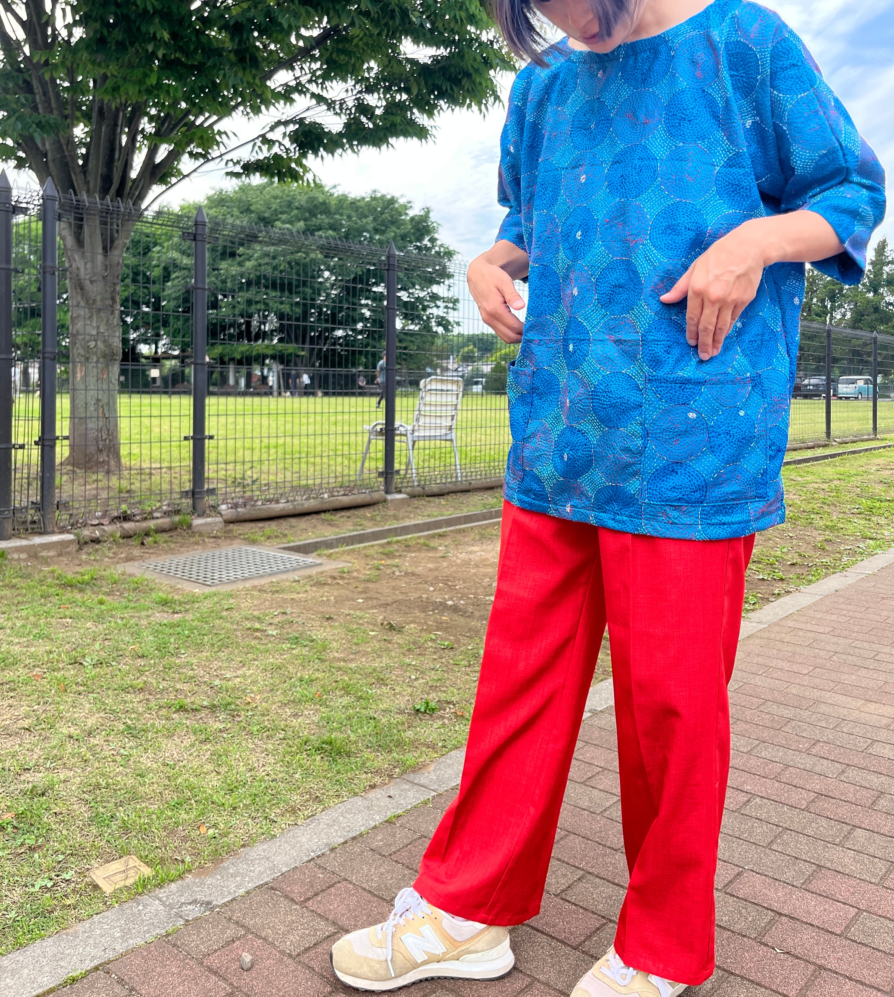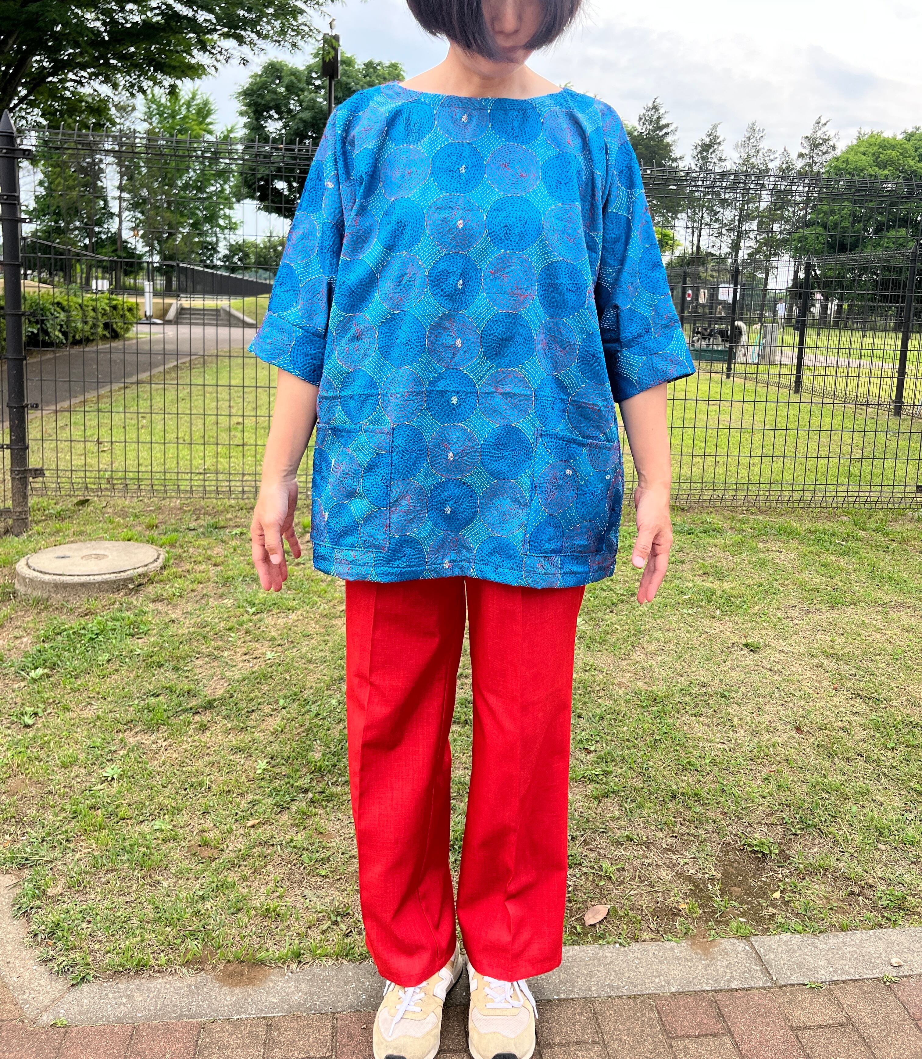このプルオーバーも、このカンタ刺繍のストールから製作しました!