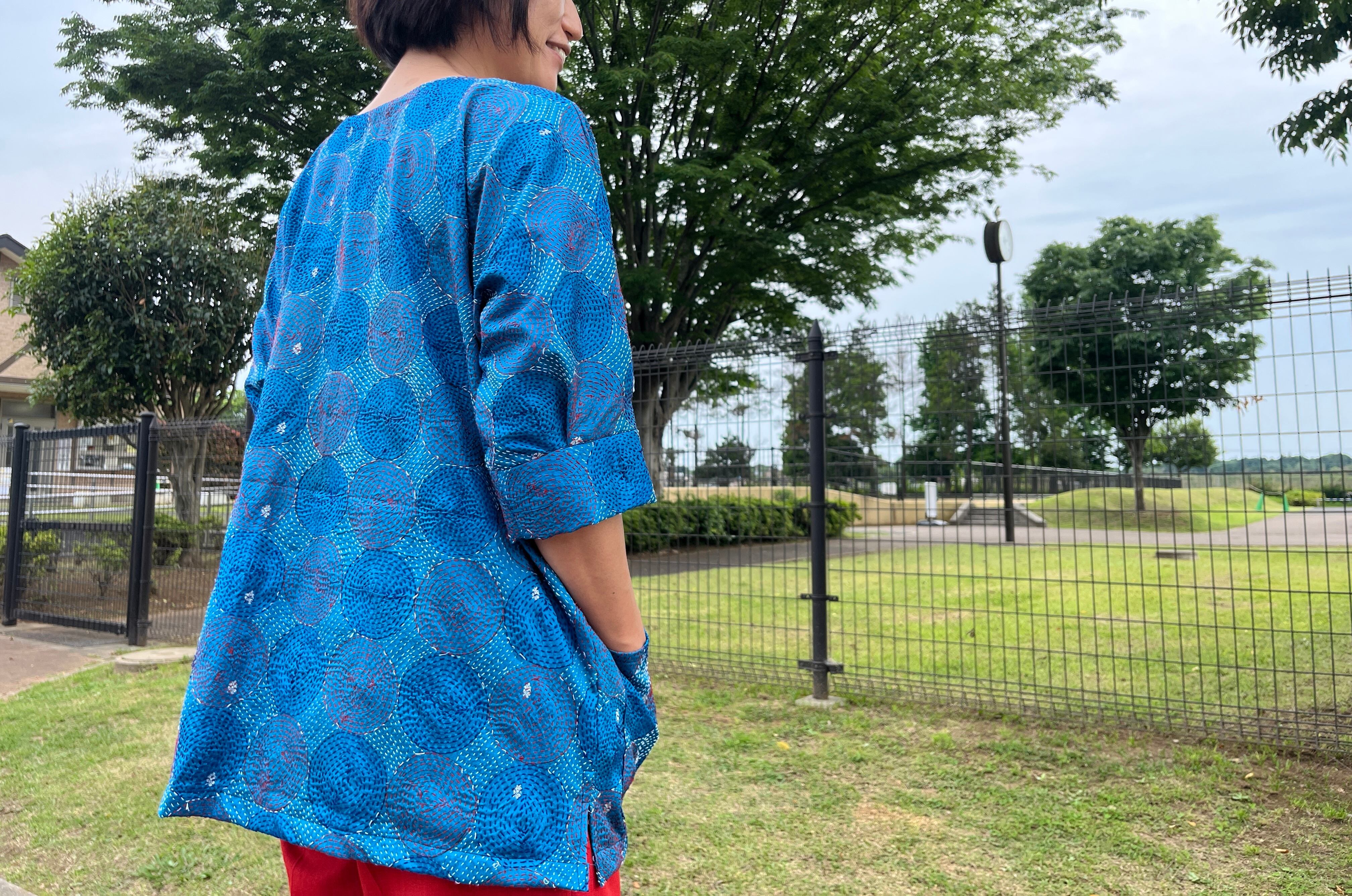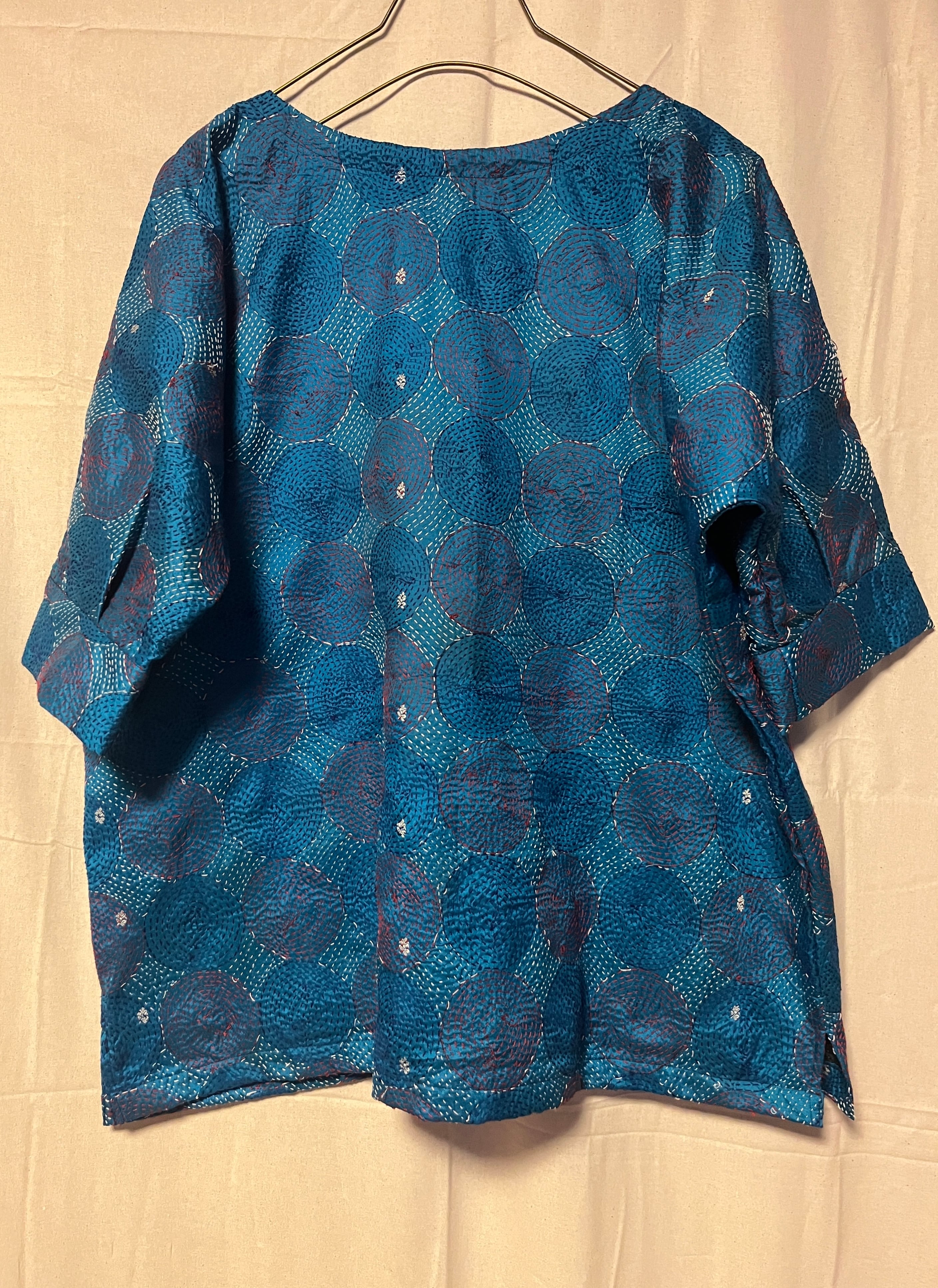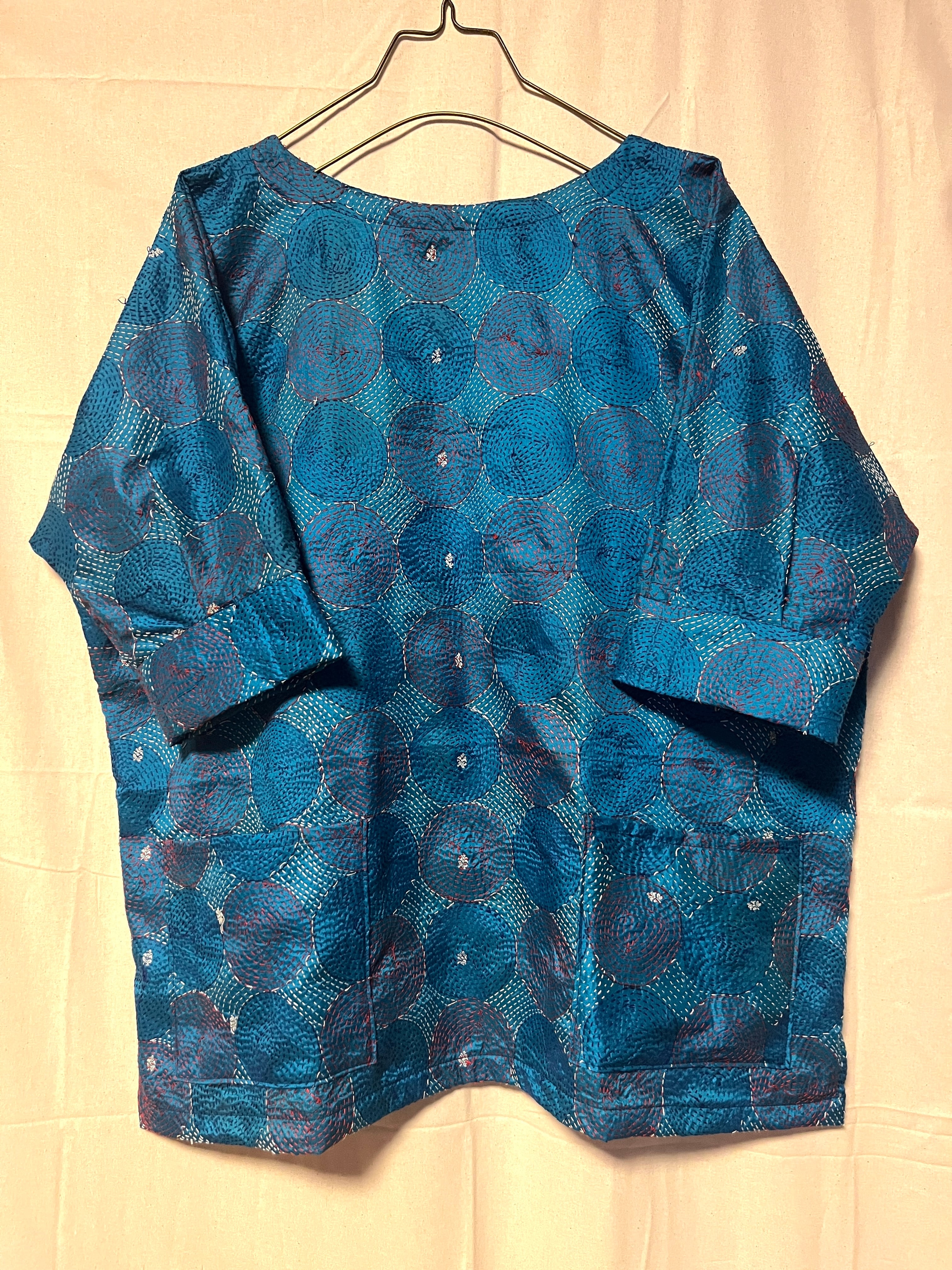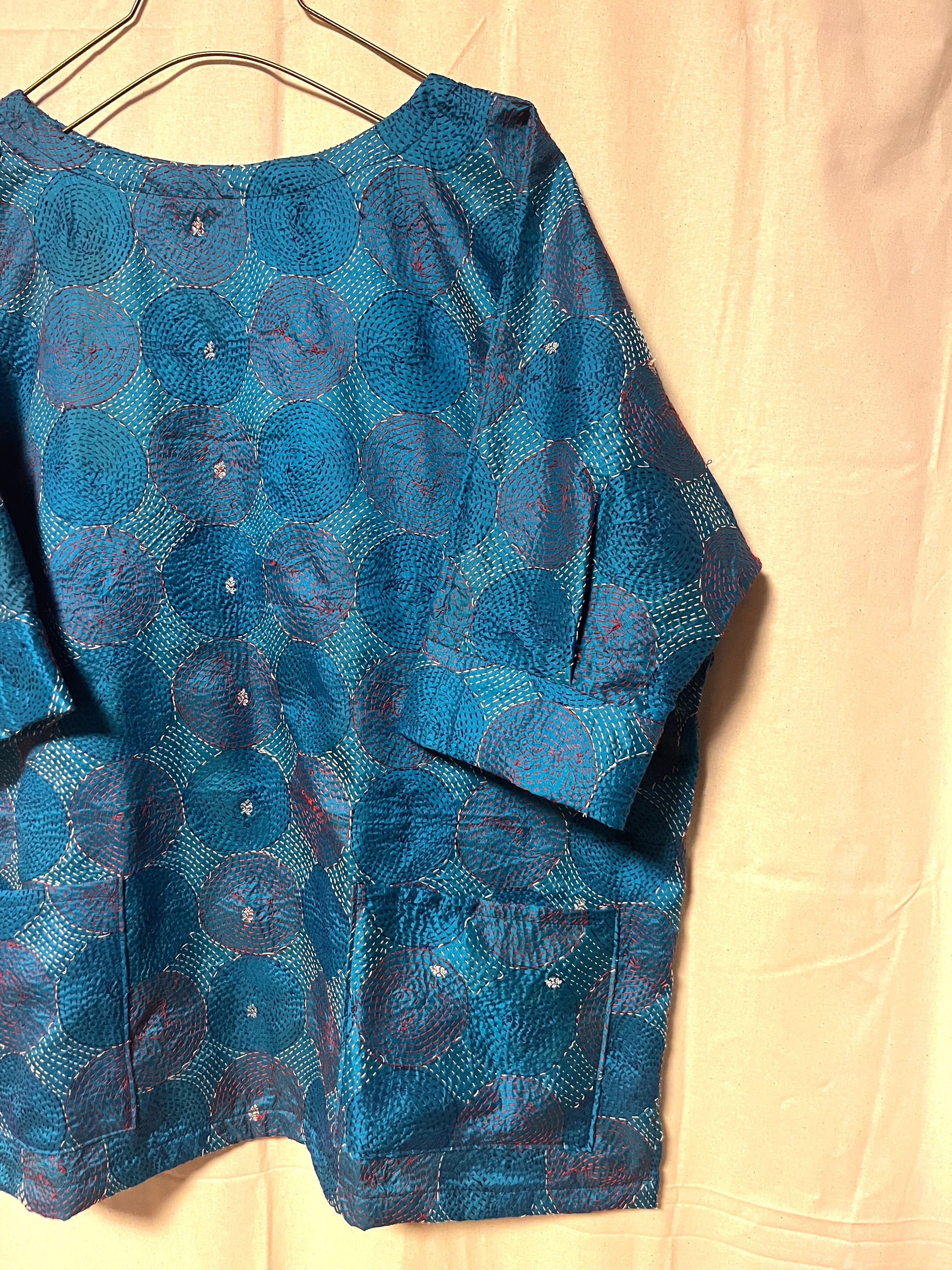 インド現地で1枚ずつ厳選し、仕入れてきたオールドサリーのカンタ刺繍ストールをプルオーバーに仕立てました!