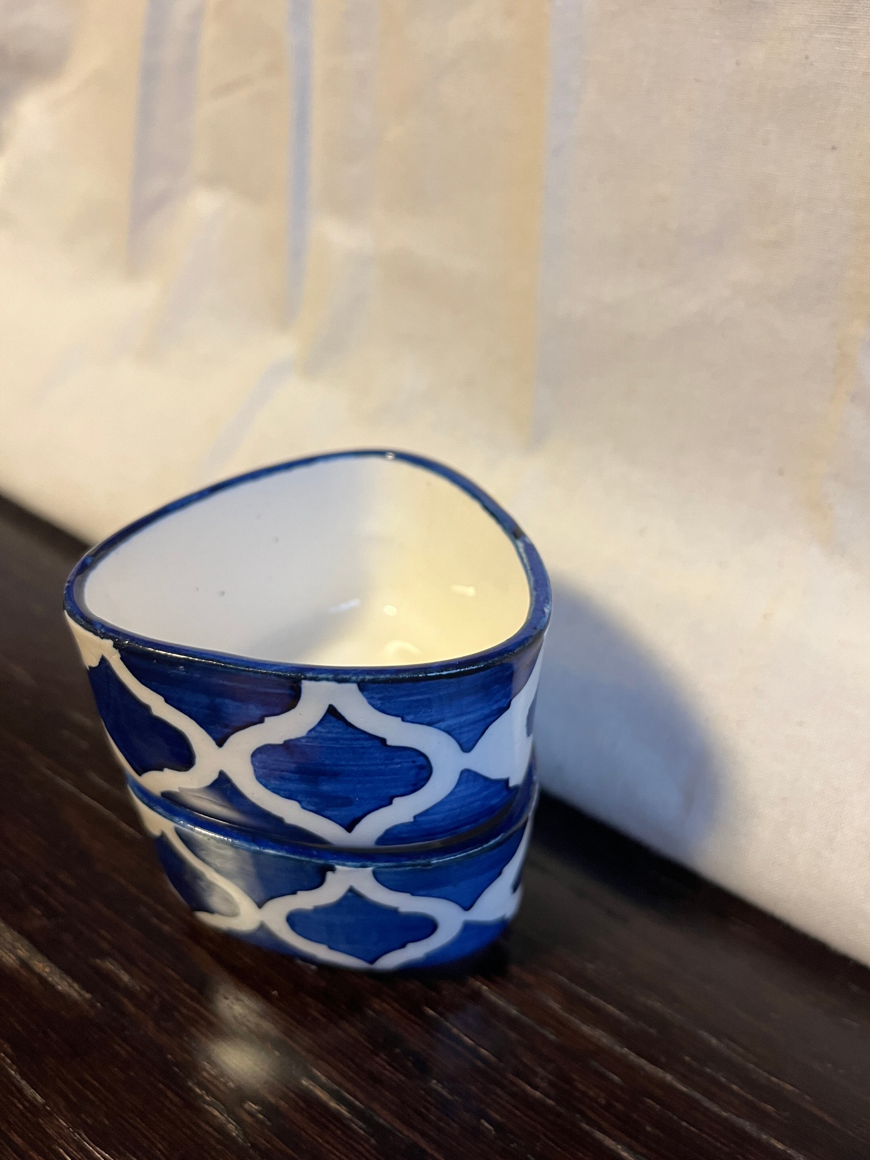 【インド】ブルーポッタリー 食器 小鉢 三角 2個セット 陶器