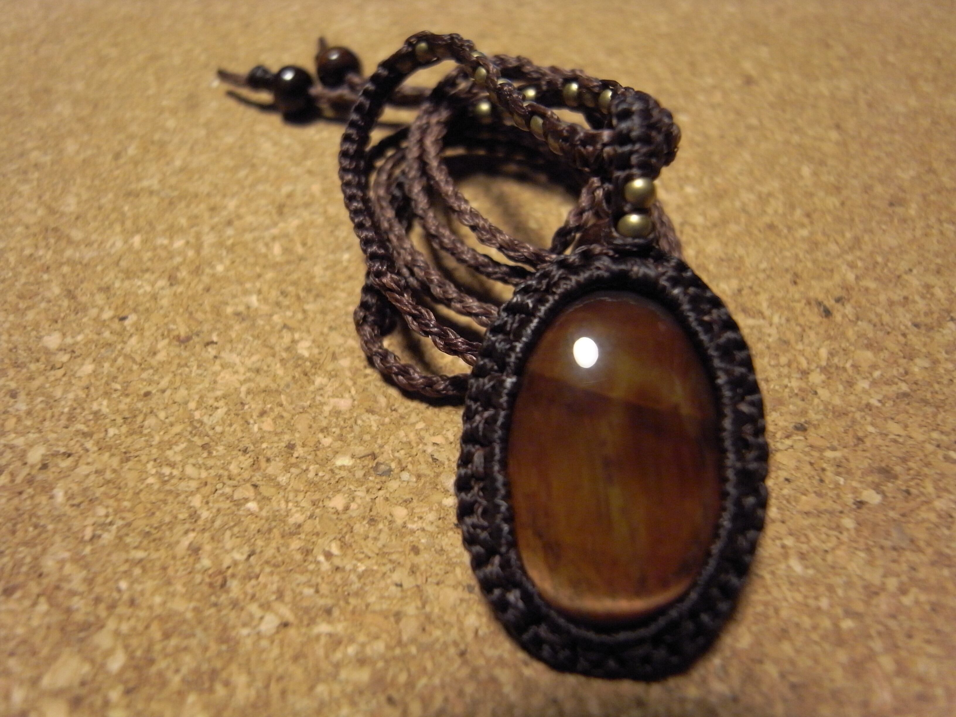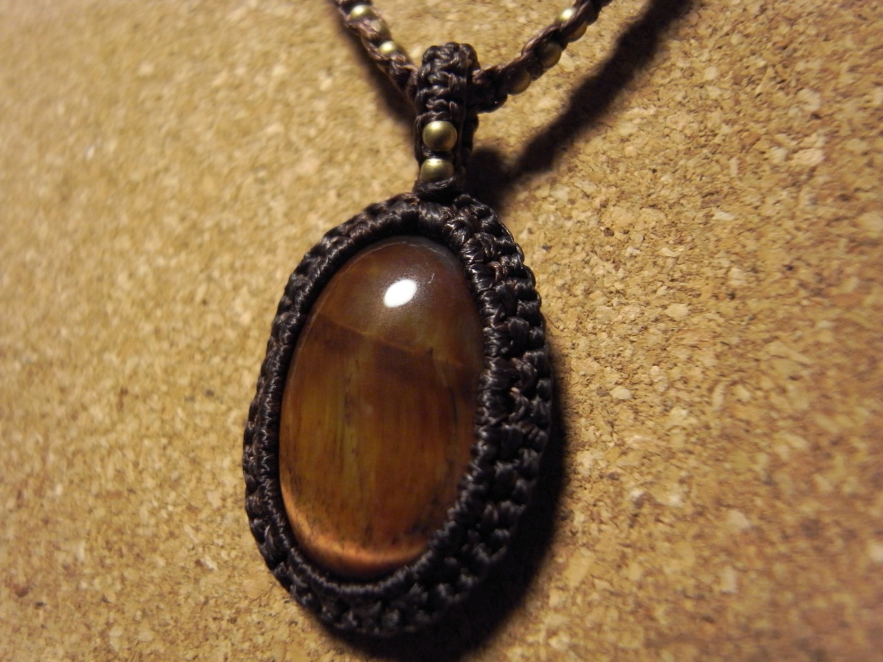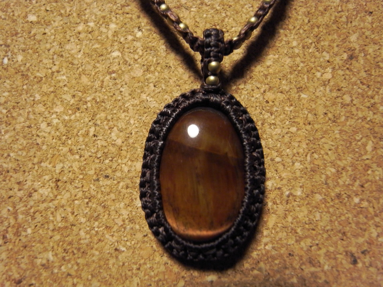 マクラメ天然石ネックレス タイガーアイ【黄金】(TIN001)国内送料無料