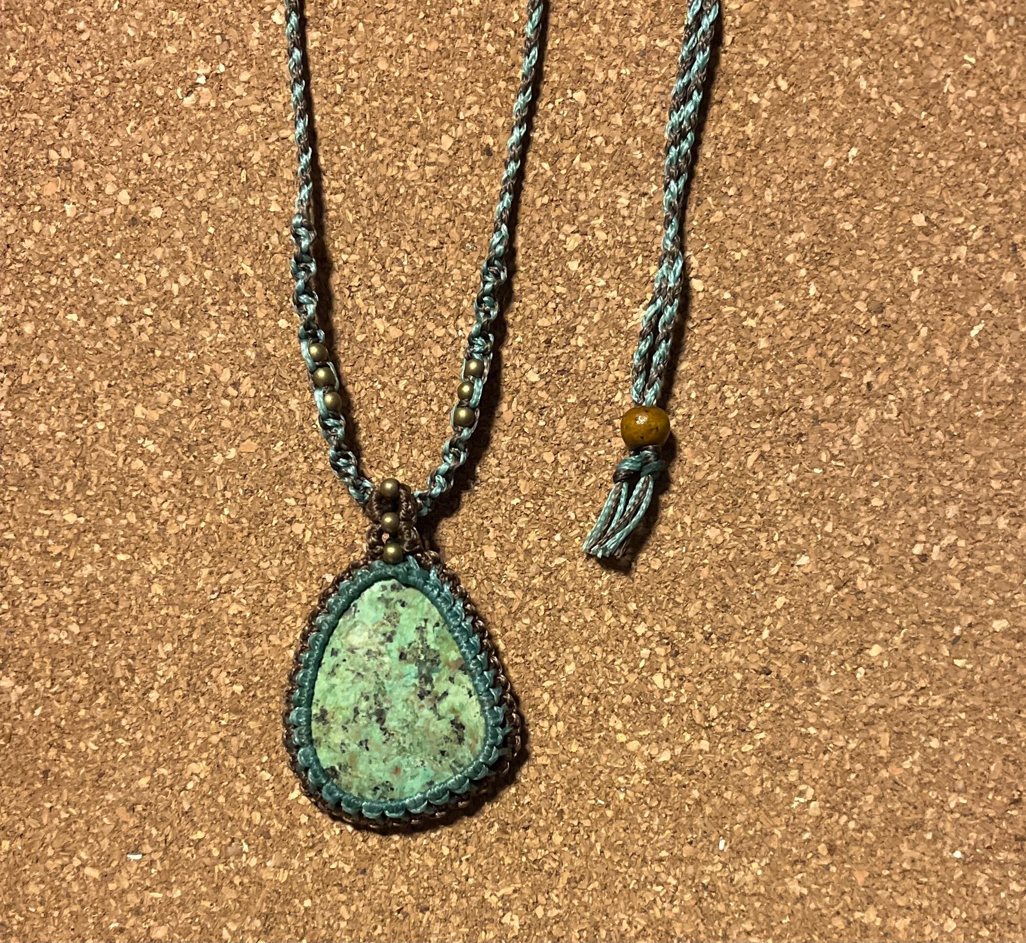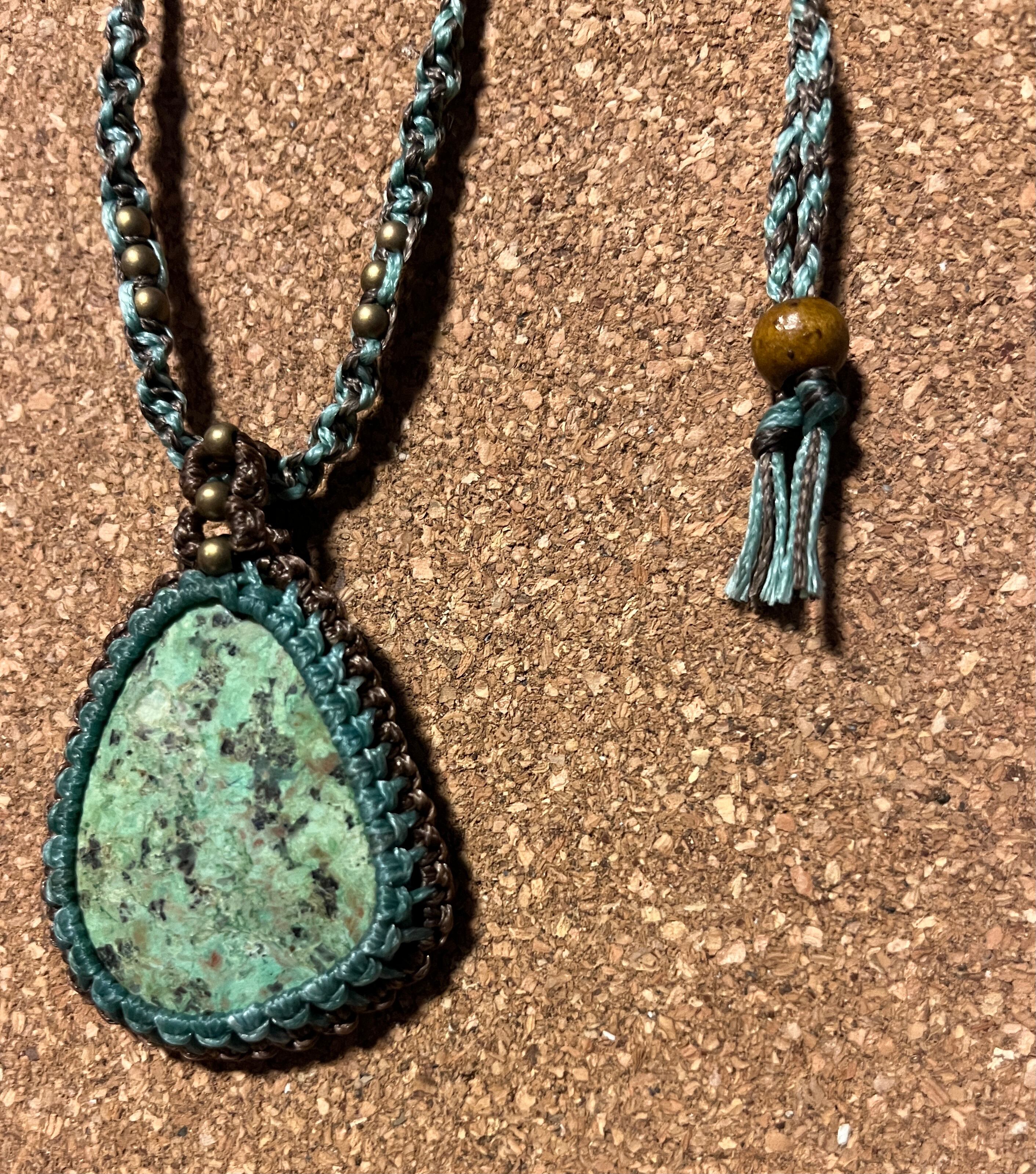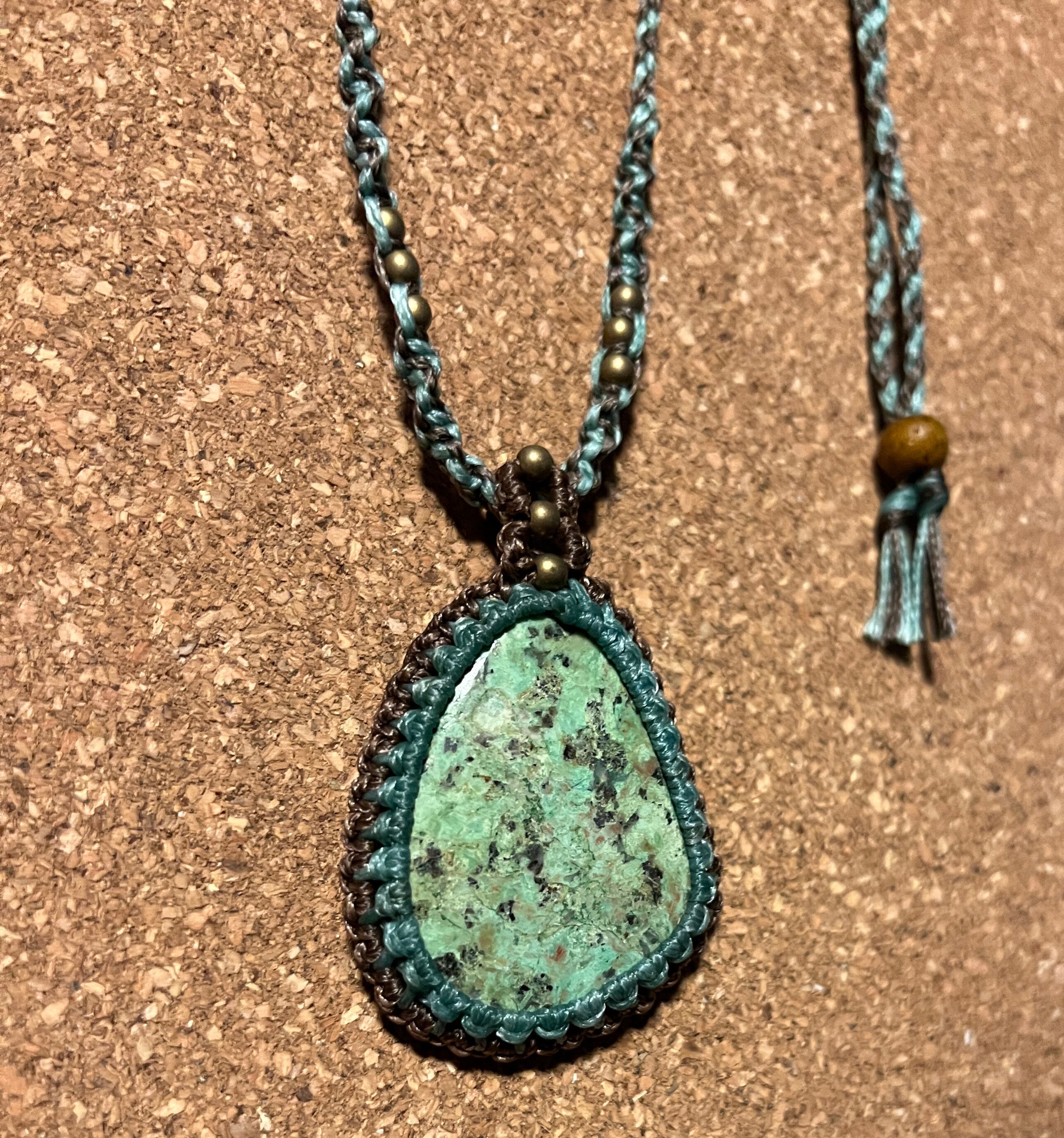 マクラメ天然石ネックレス ターコイズ【草原】(TN003)国内送料無料