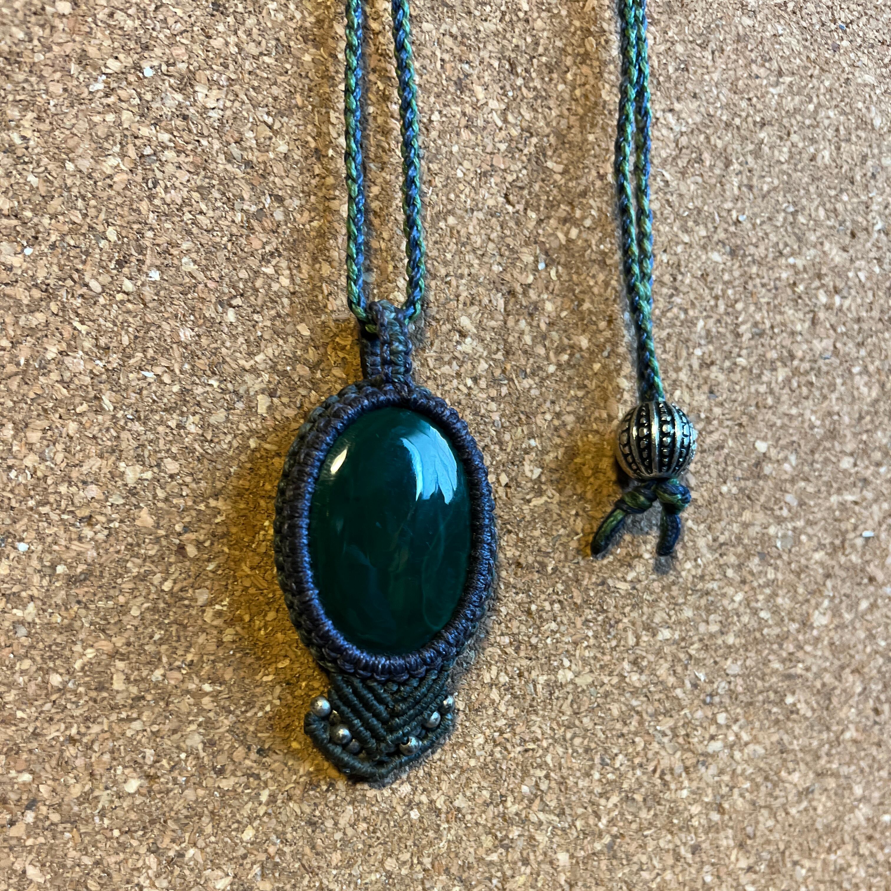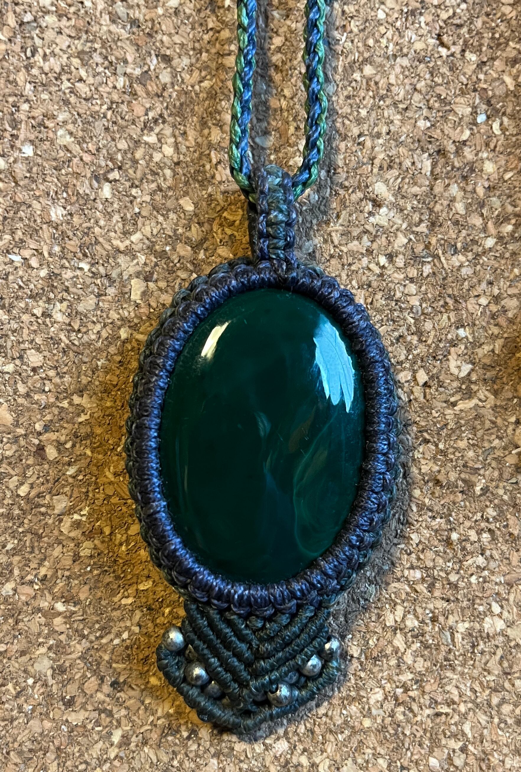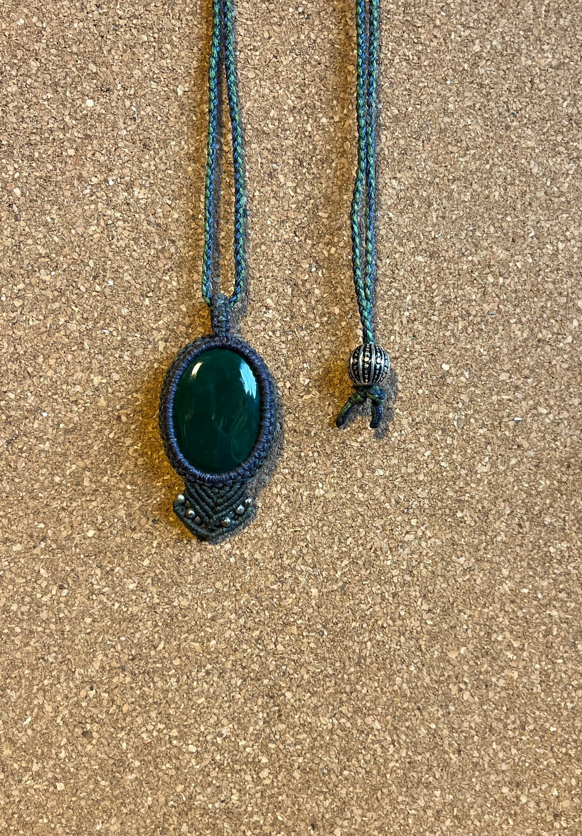 マクラメ天然石ネックレス マラカイト【苔玉】(MKN002)国内送料無料
