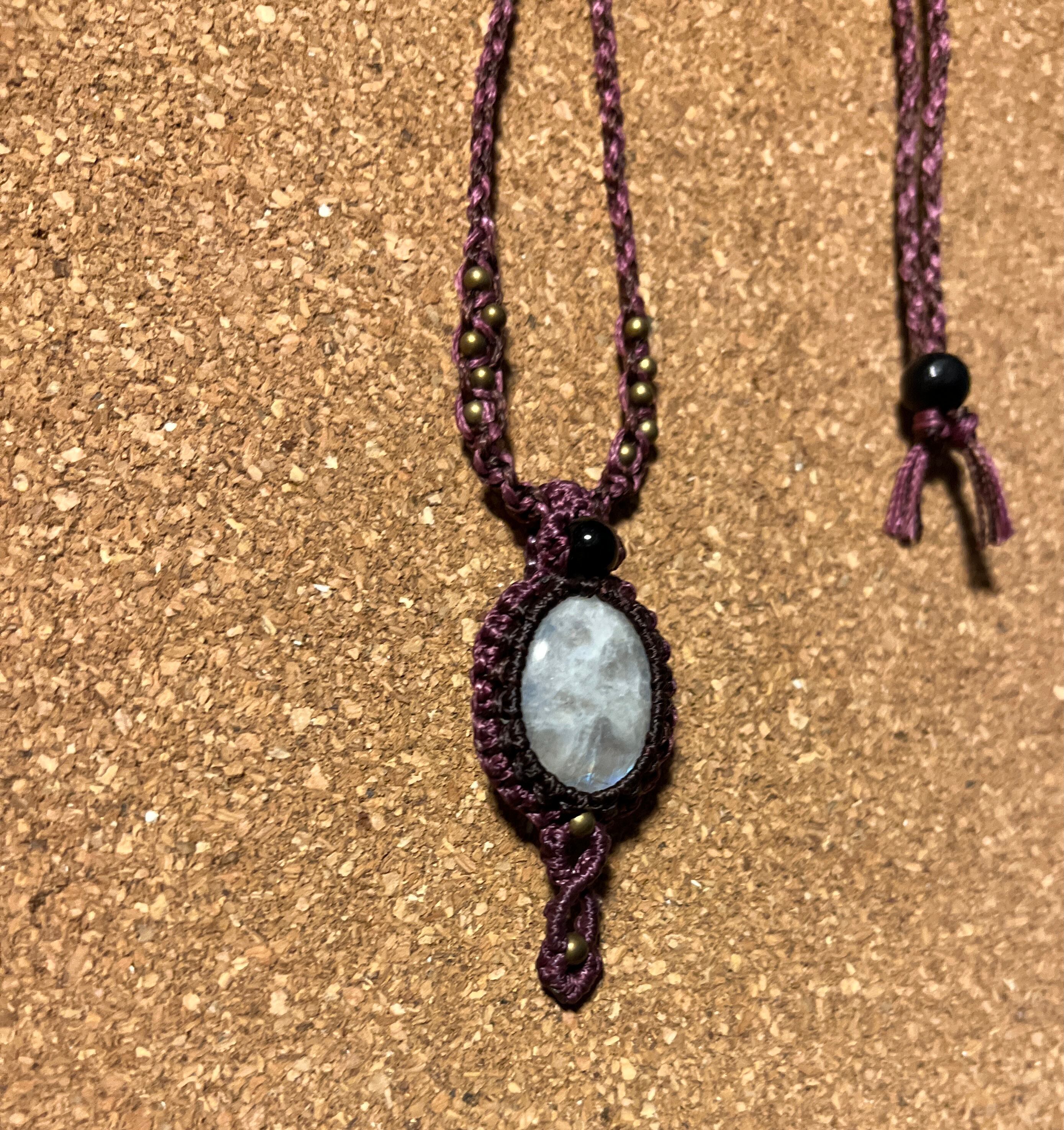 マクラメ天然石ネックレス ムーンストーン【さざ波】(MN002)国内送料無料