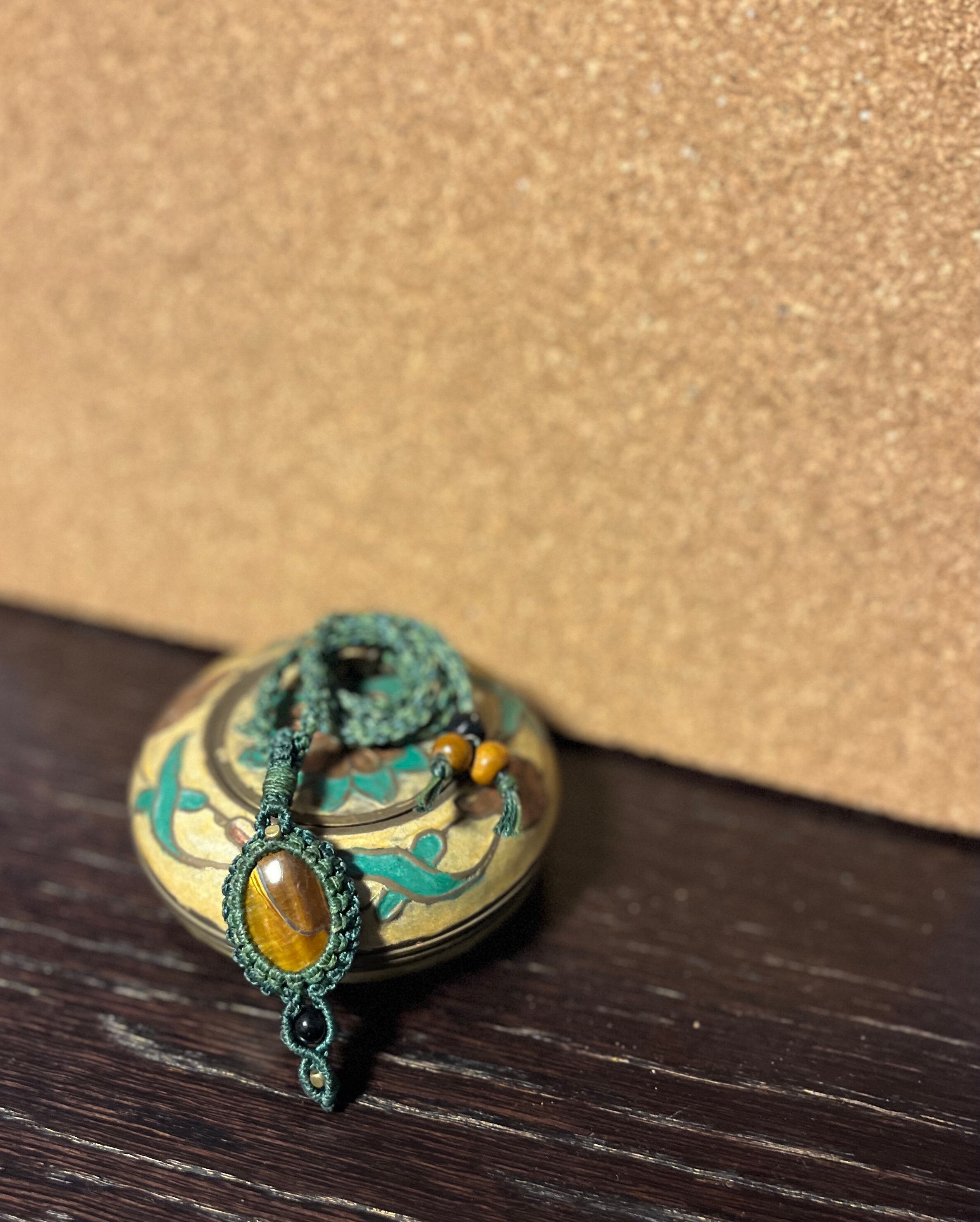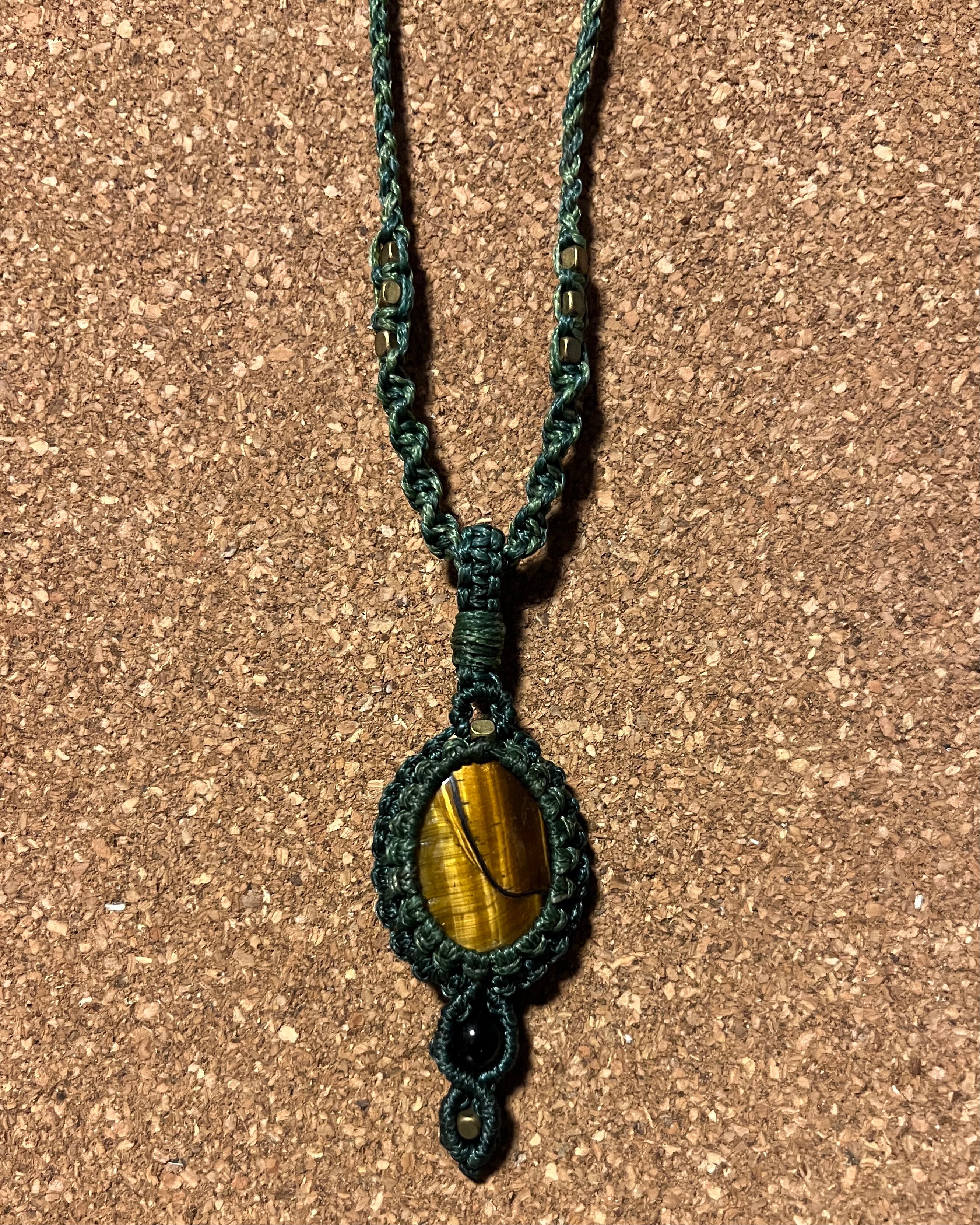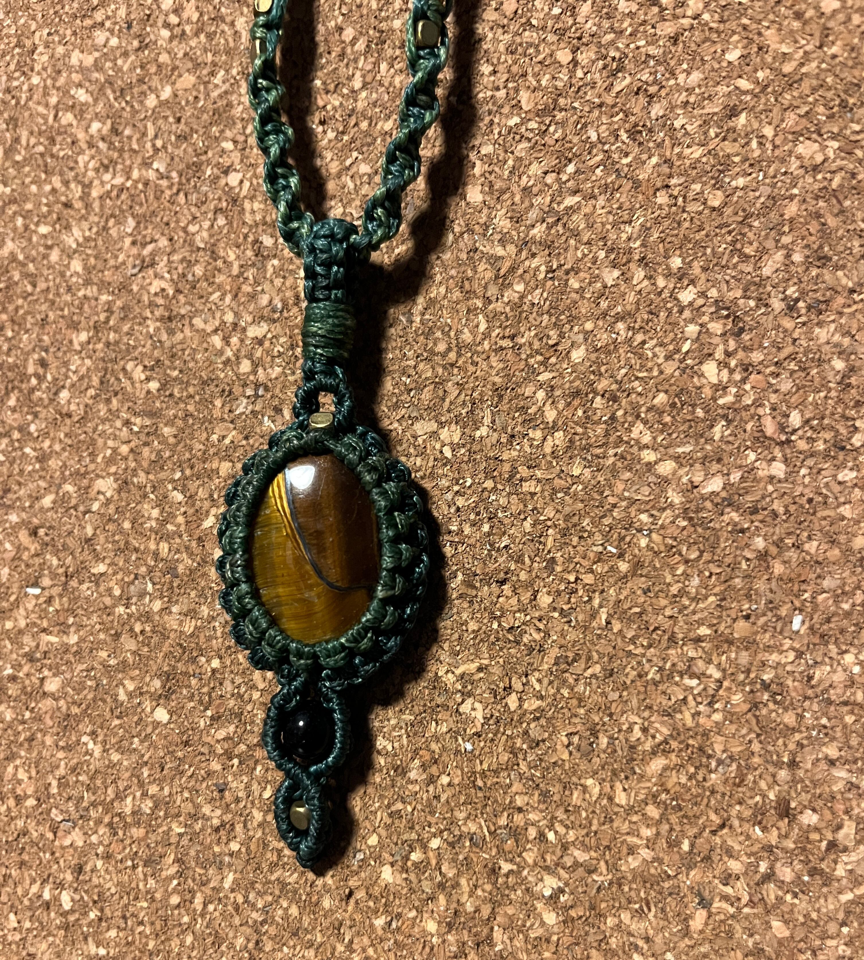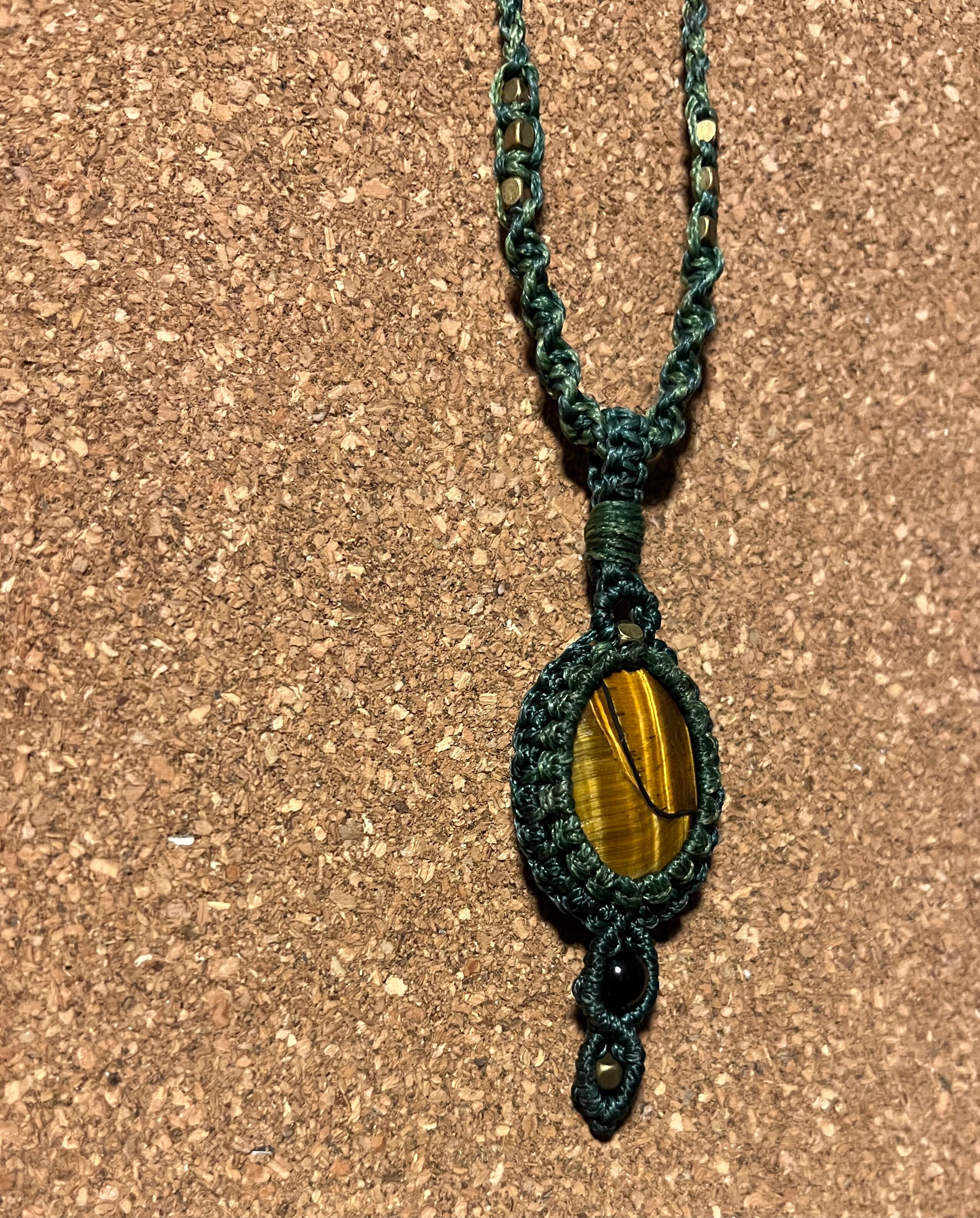 マクラメ天然石ネックレス タイガーアイ【ブラウンシュガー】(TIN003)国内送料無料