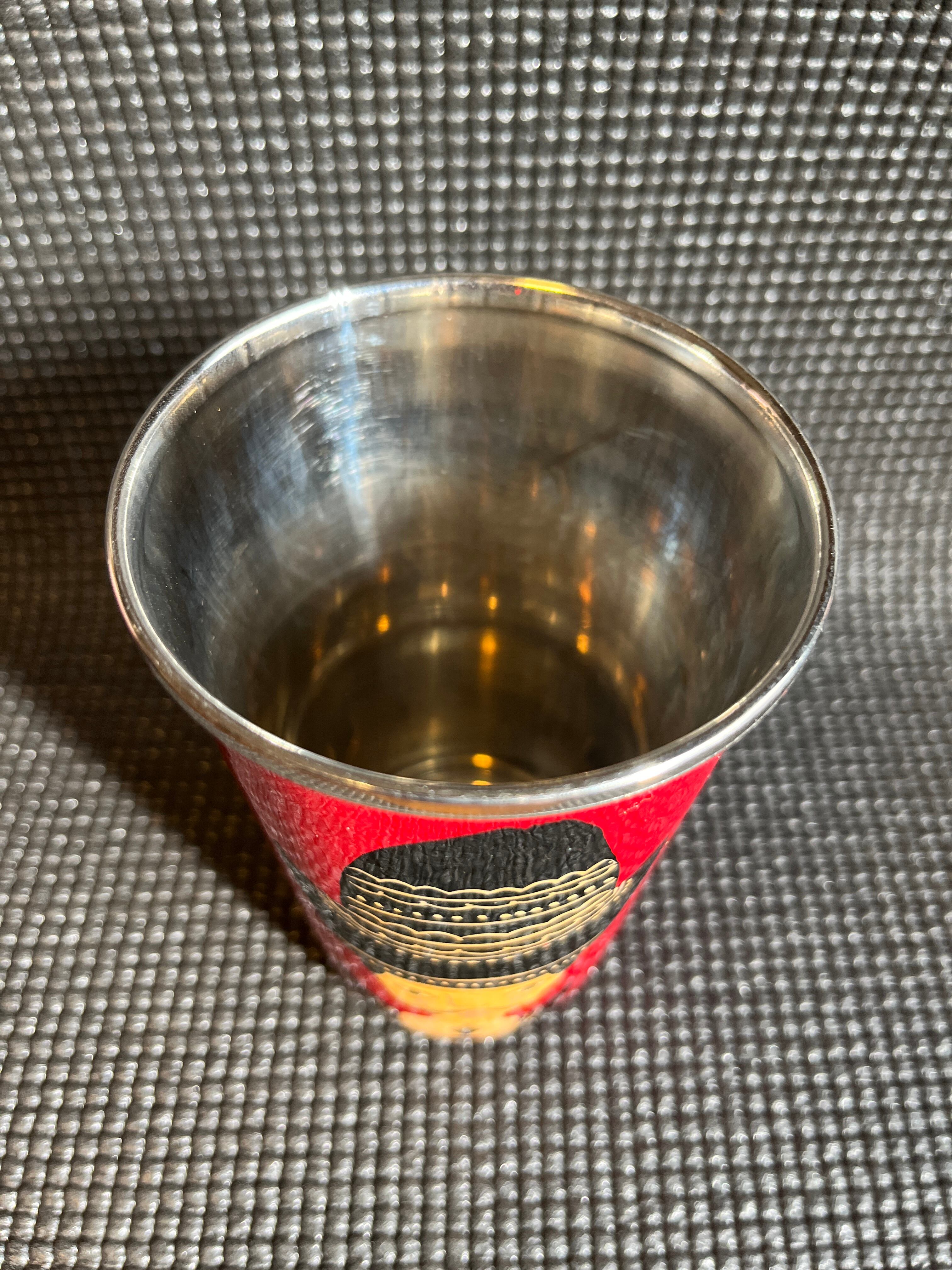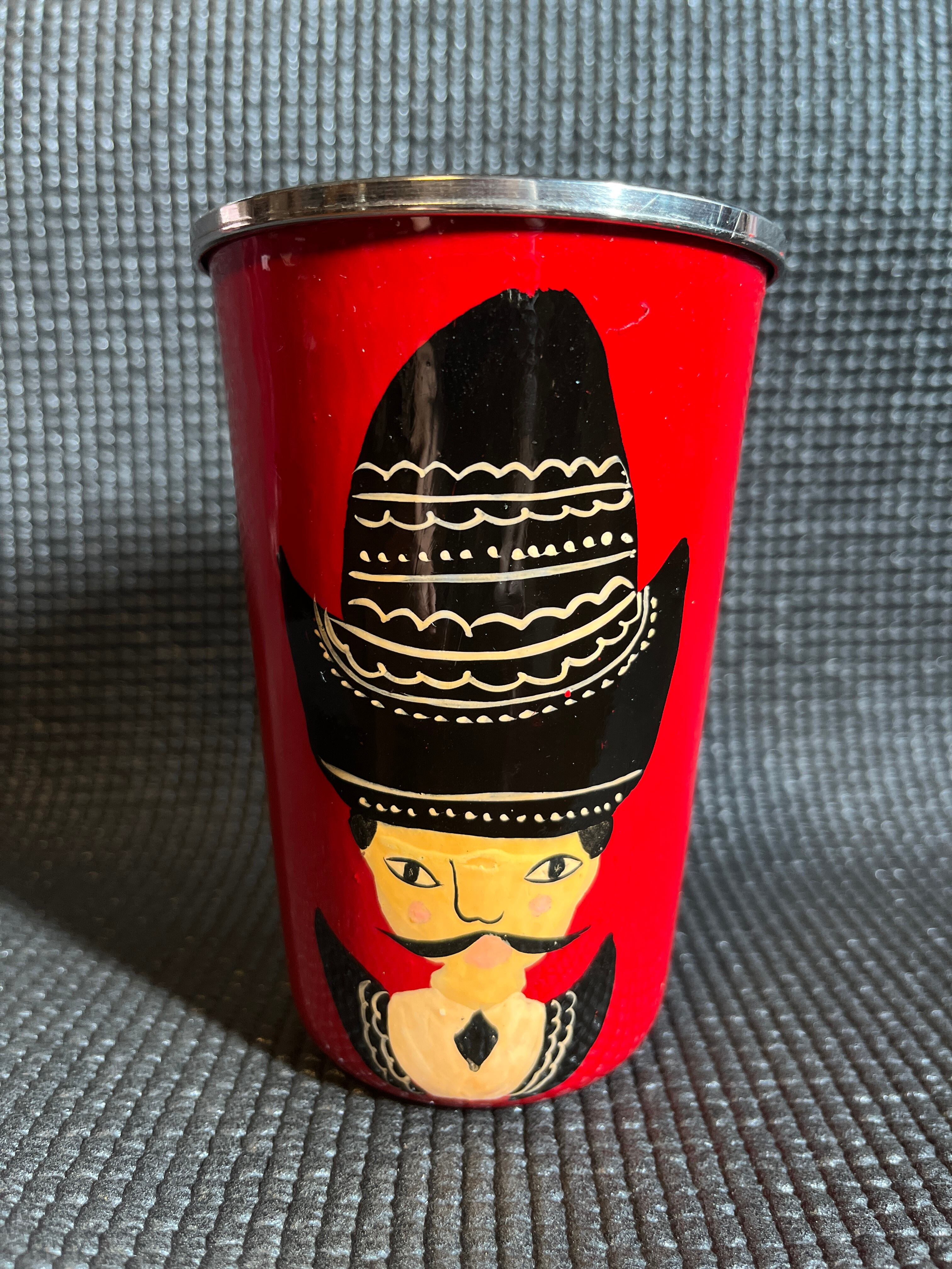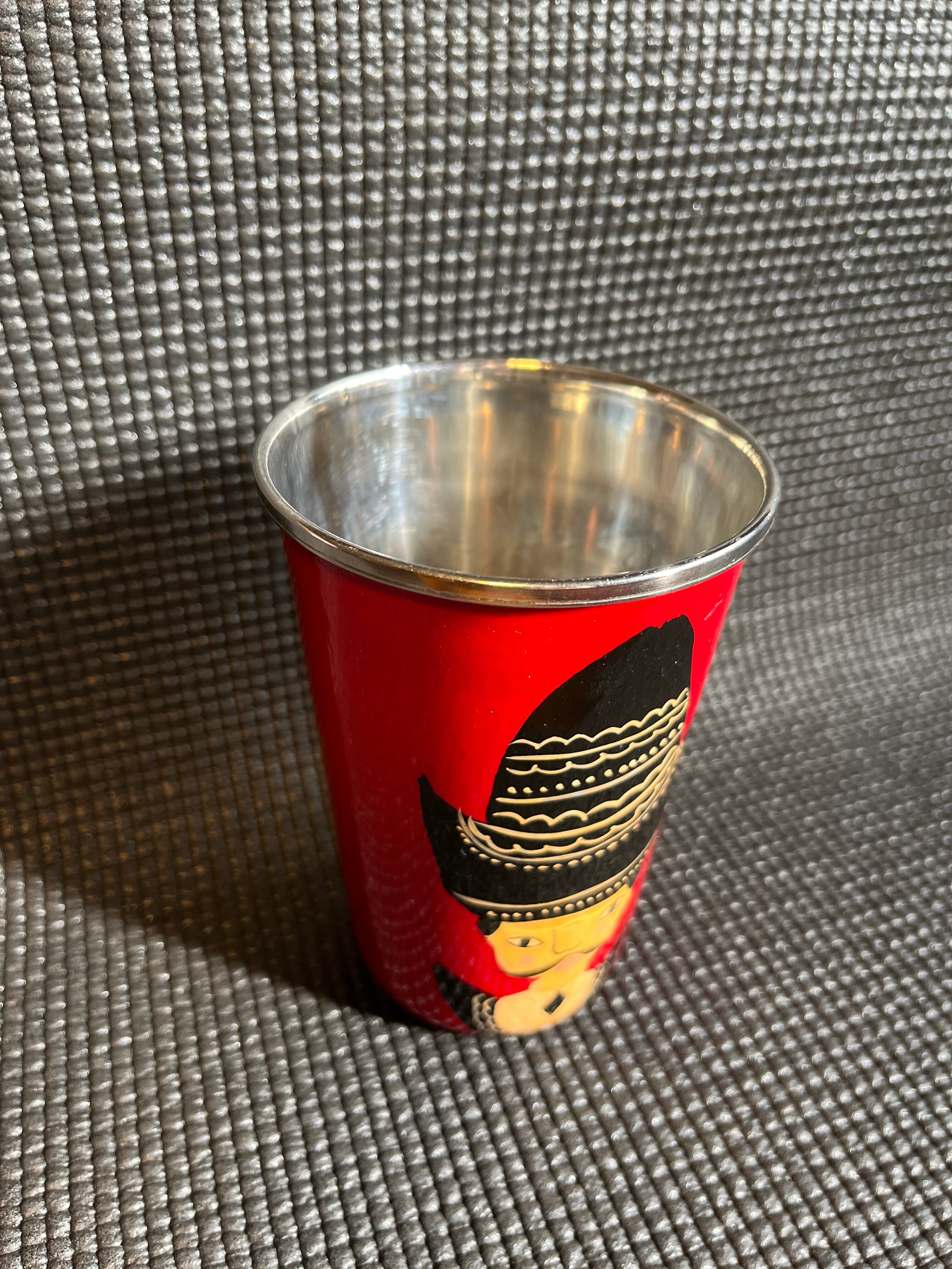 インド・カシミール地方の職人さん手描きステンレスカップ(レッド)