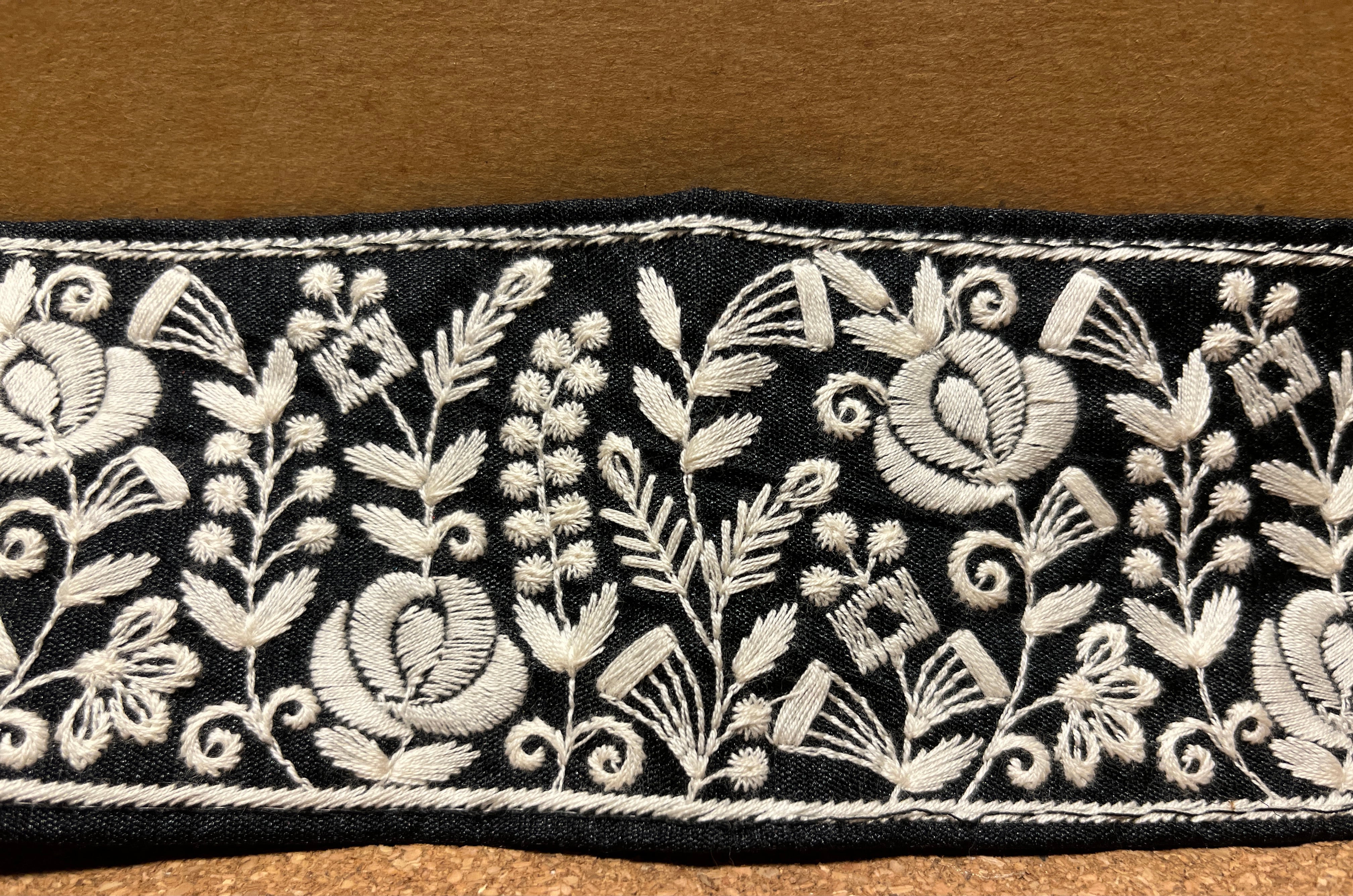 【インド刺繍リボン/50cm単位】ハンドメイド素材 りぼん 刺繍テープ チロリアンテープ フラワーモチーフ 手芸 アクセサリーパーツ