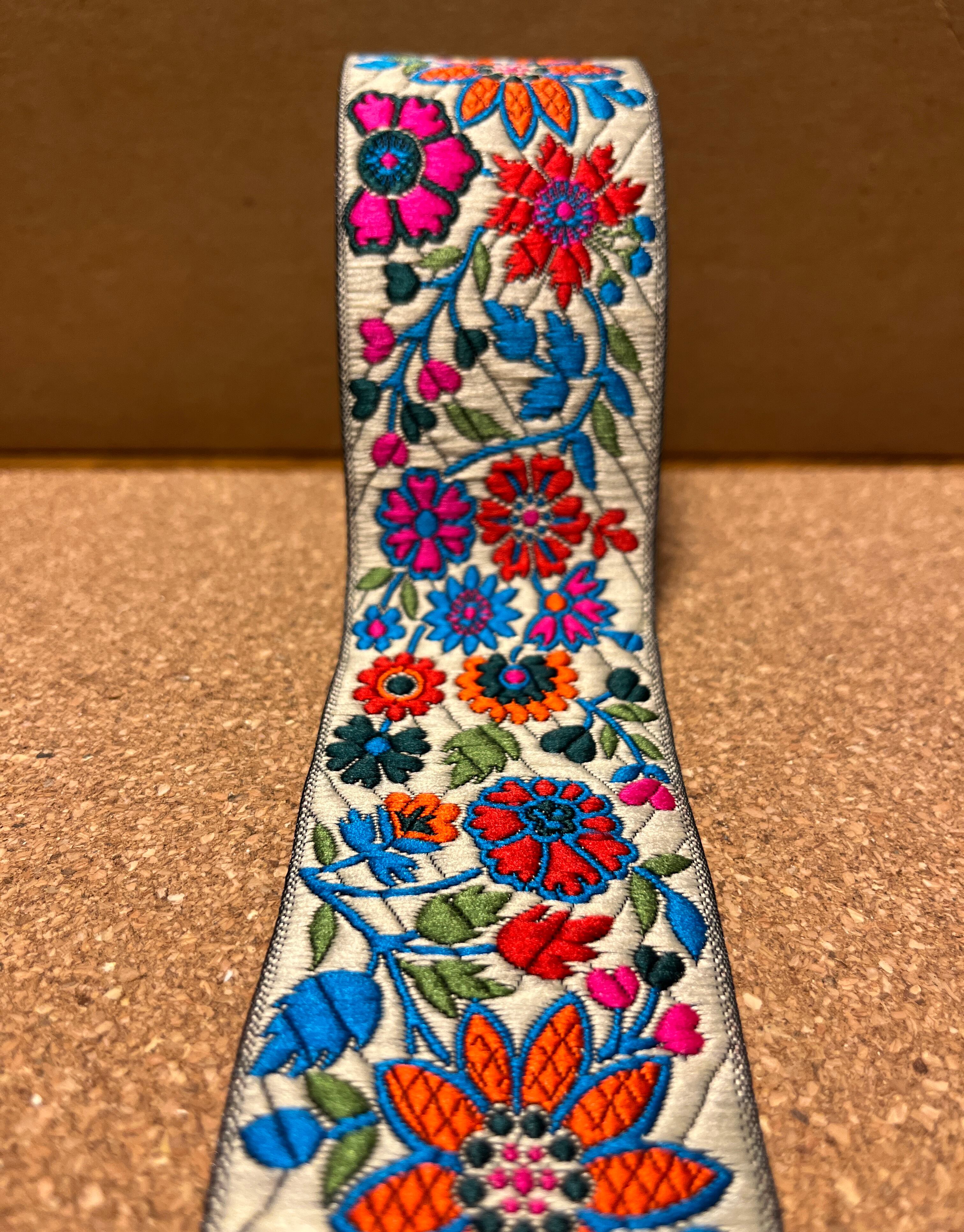 【インド刺繍リボン/50cm単位】ハンドメイド素材 りぼん 刺繍テープ チロリアンテープ フラワーモチーフ 手芸 アクセサリーパーツ