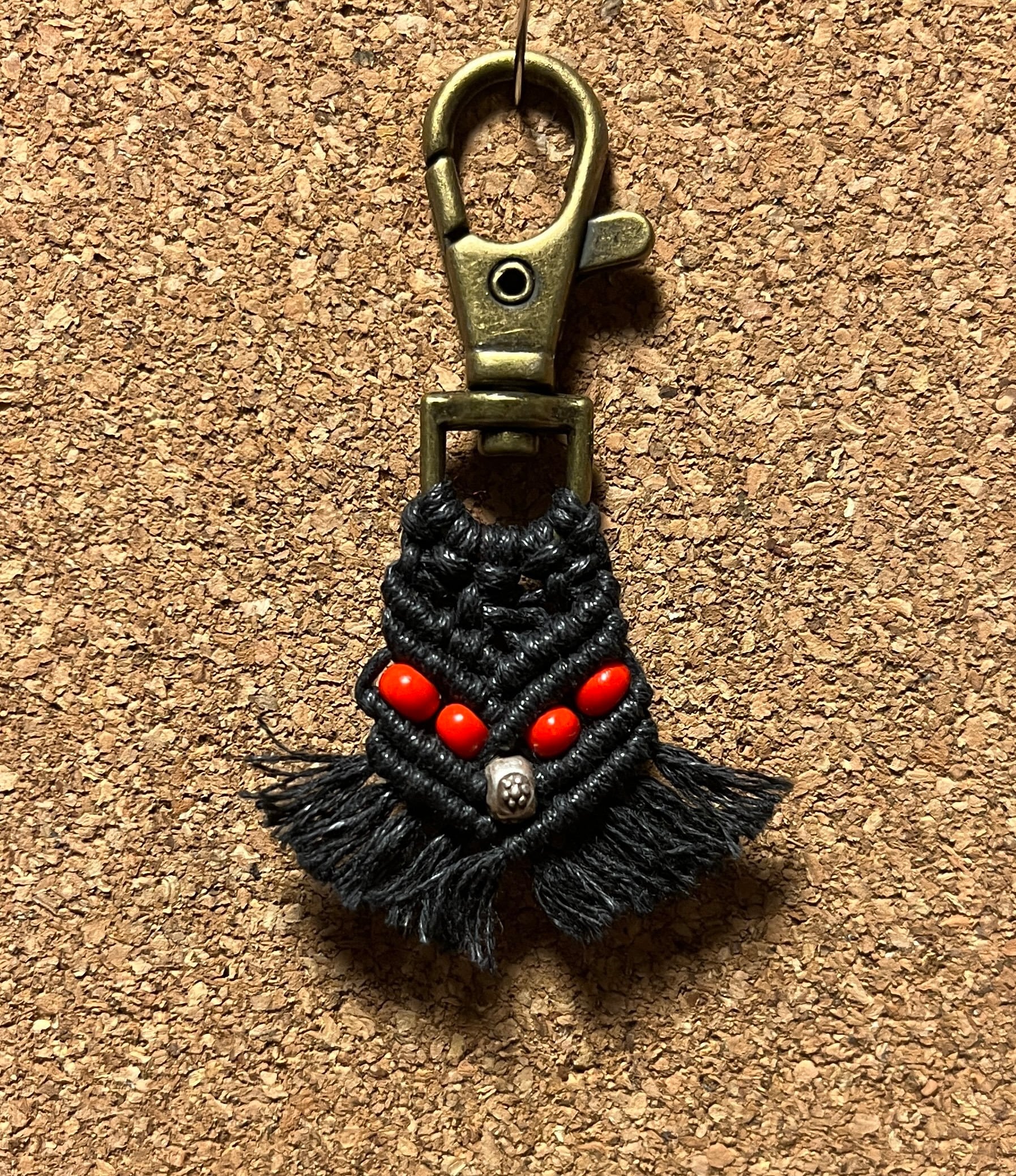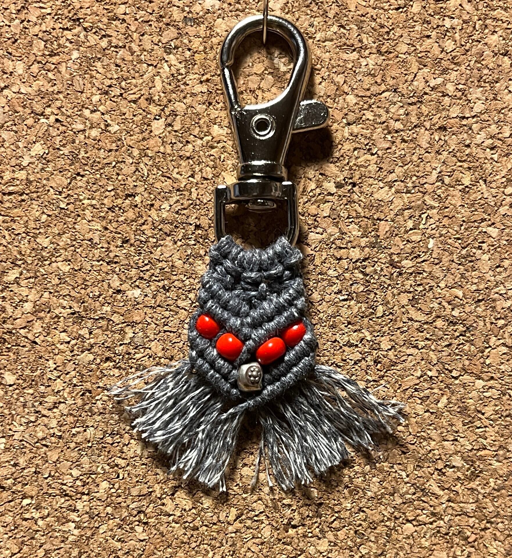 カレンシルバービーズとアフリカンビーズのマクラメキーホルダーです。