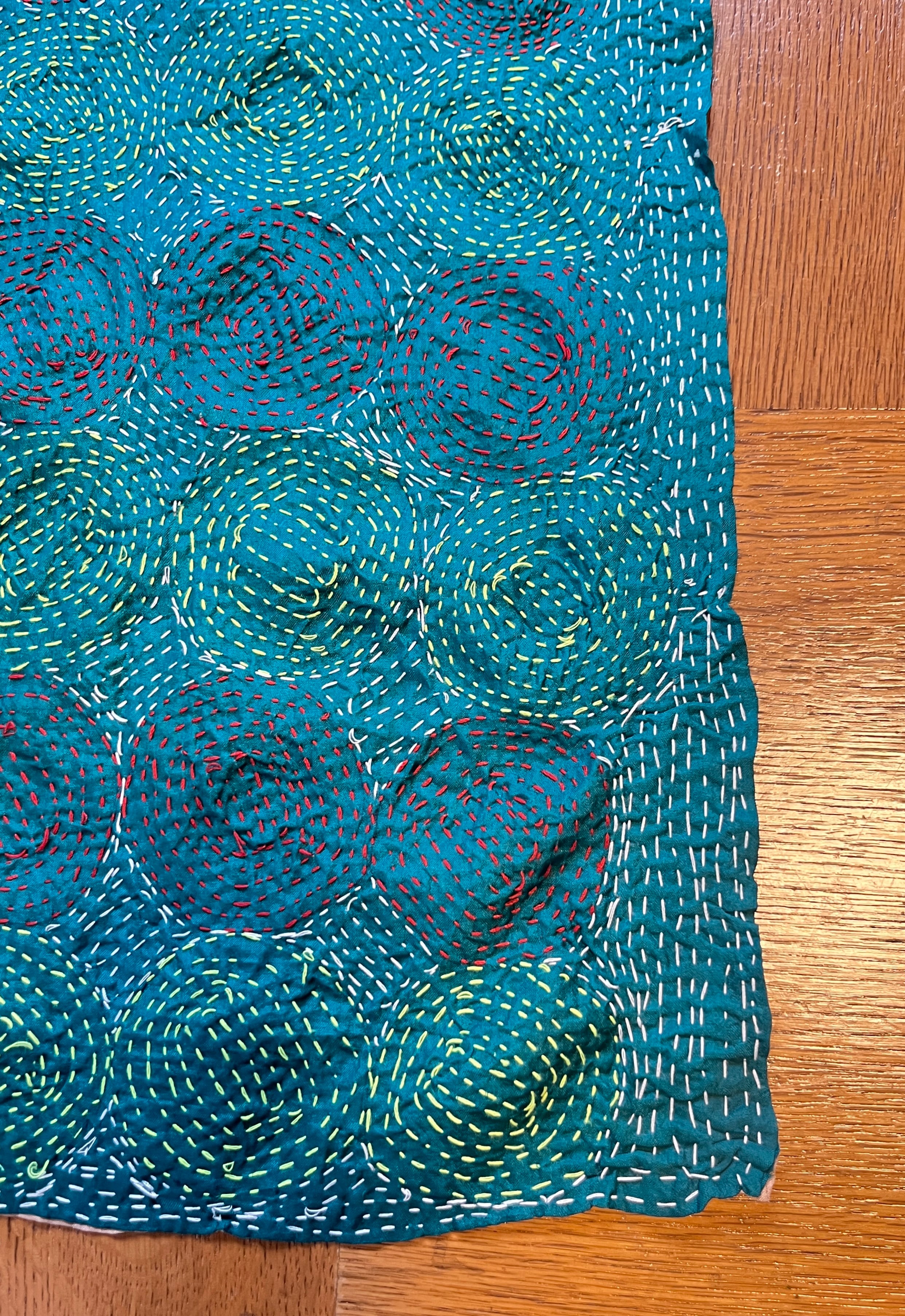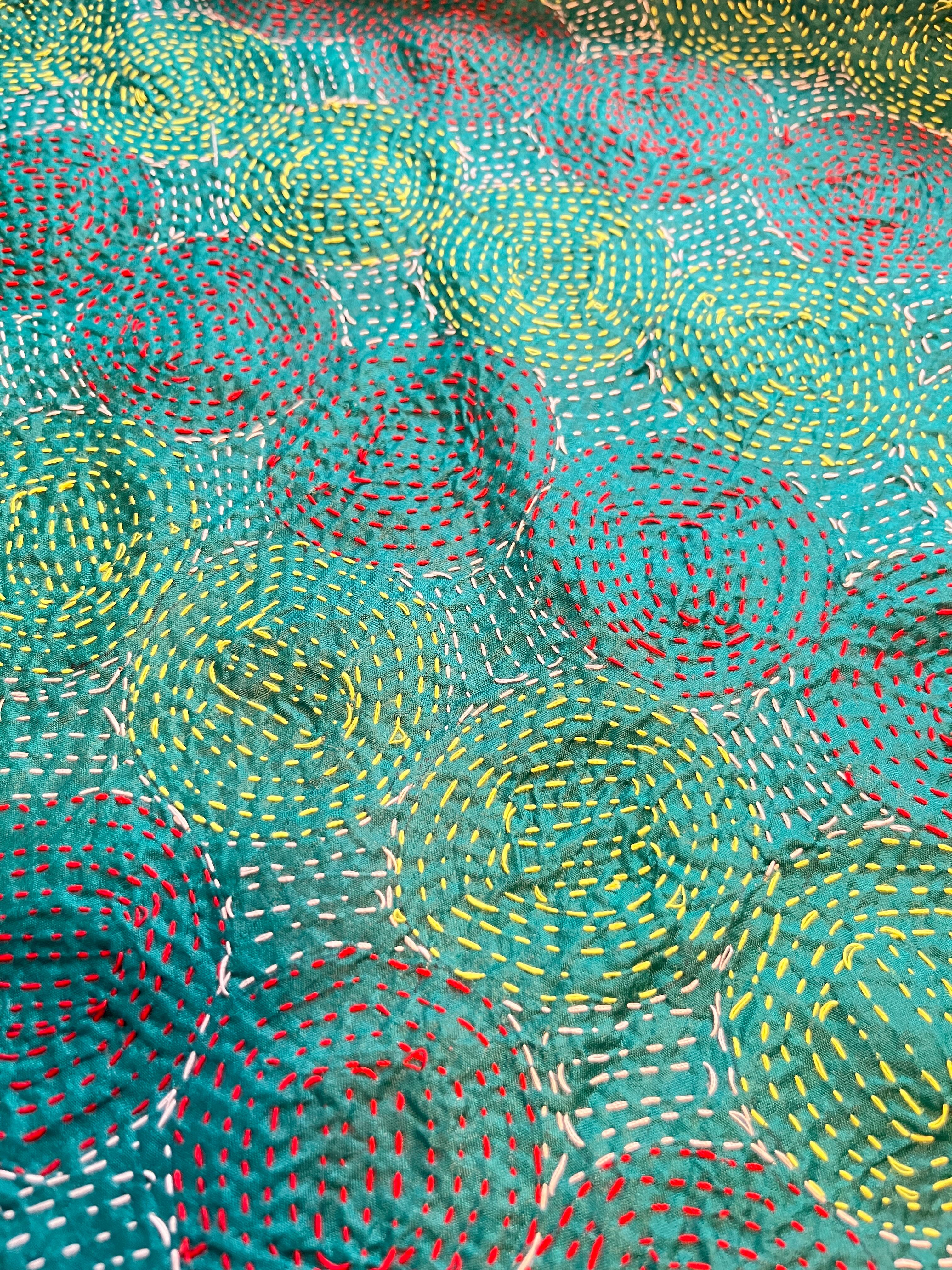 【インド】オールドサリーのカンタ刺繍リバーシブルストール&マルチカバー2(国内送料無料)