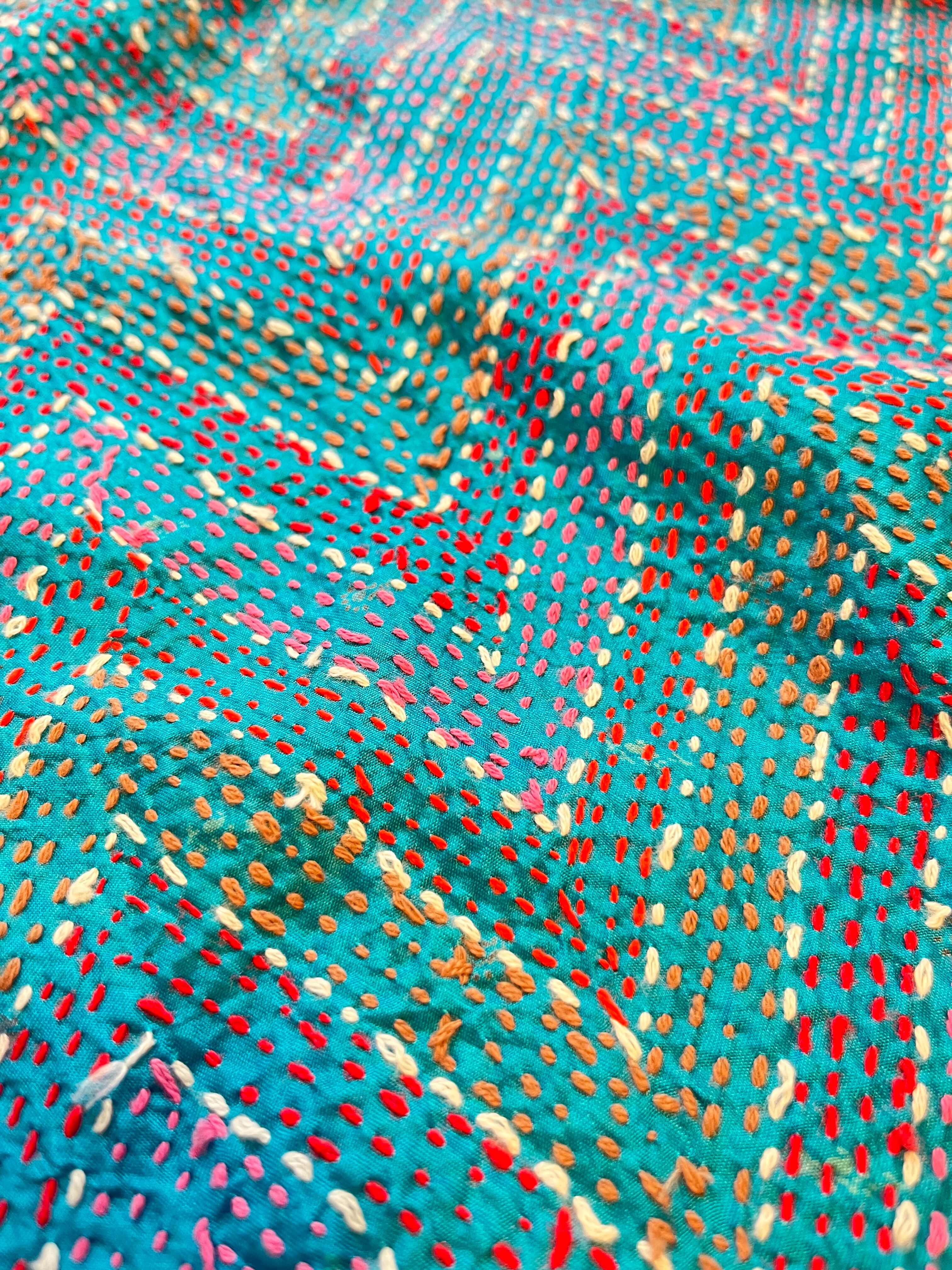 【インド】オールドサリーのカンタ刺繍リバーシブルストール&マルチカバー3(国内送料無料)