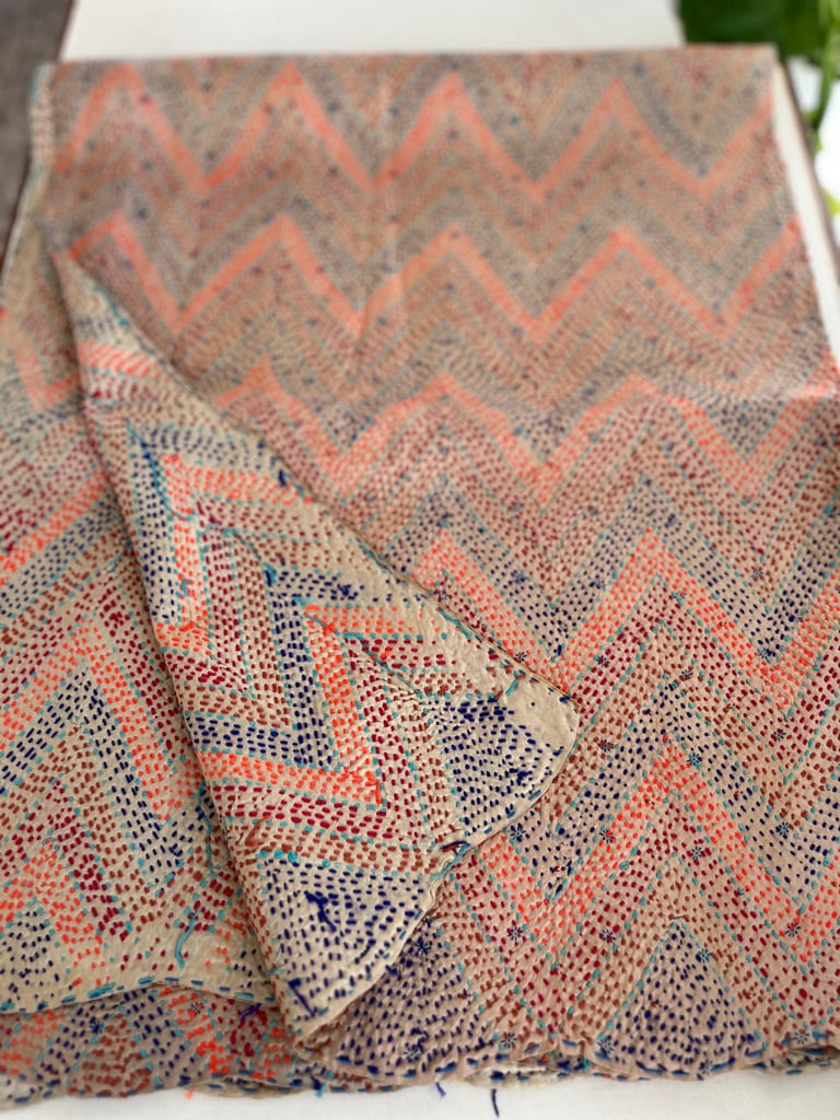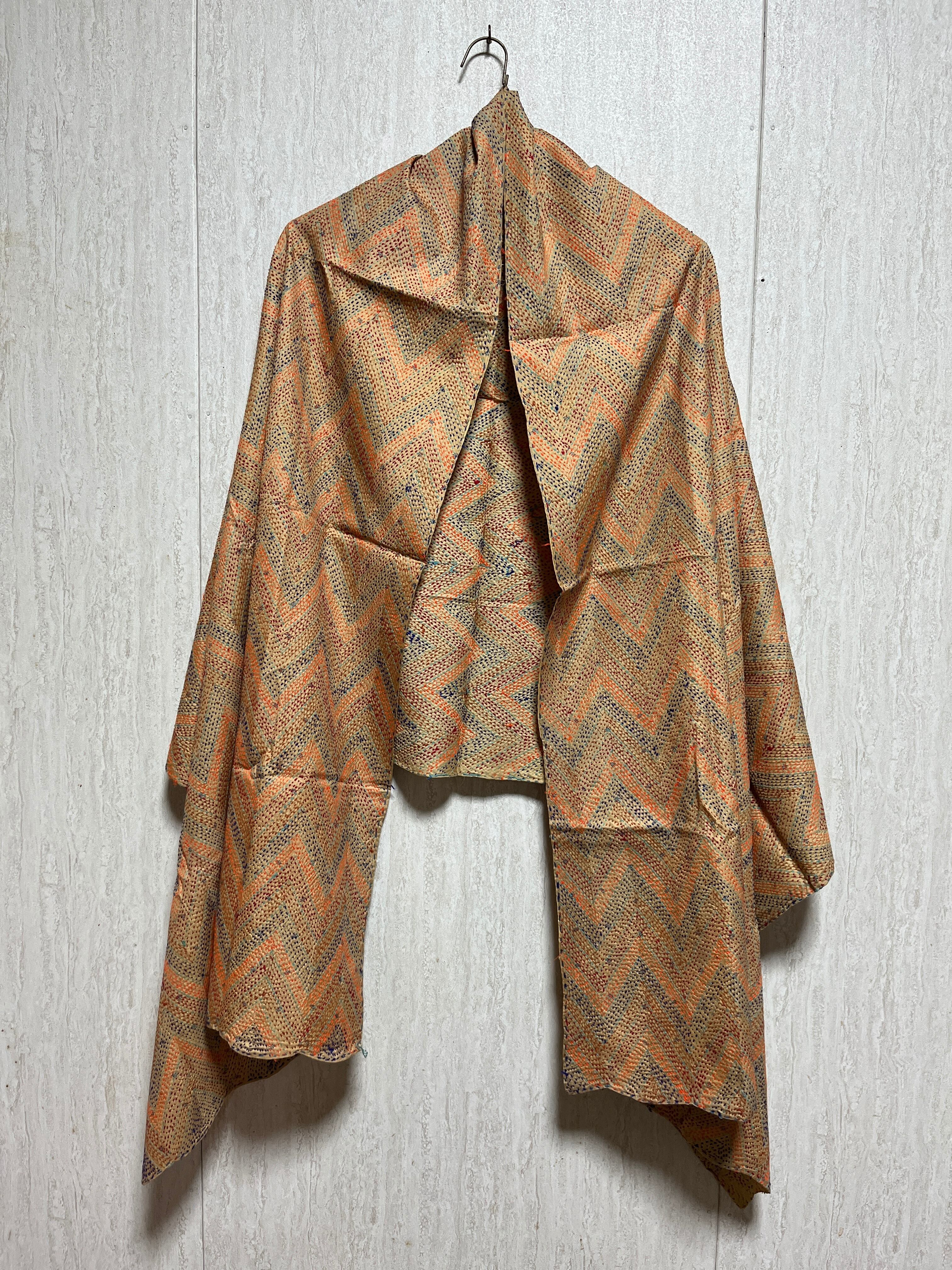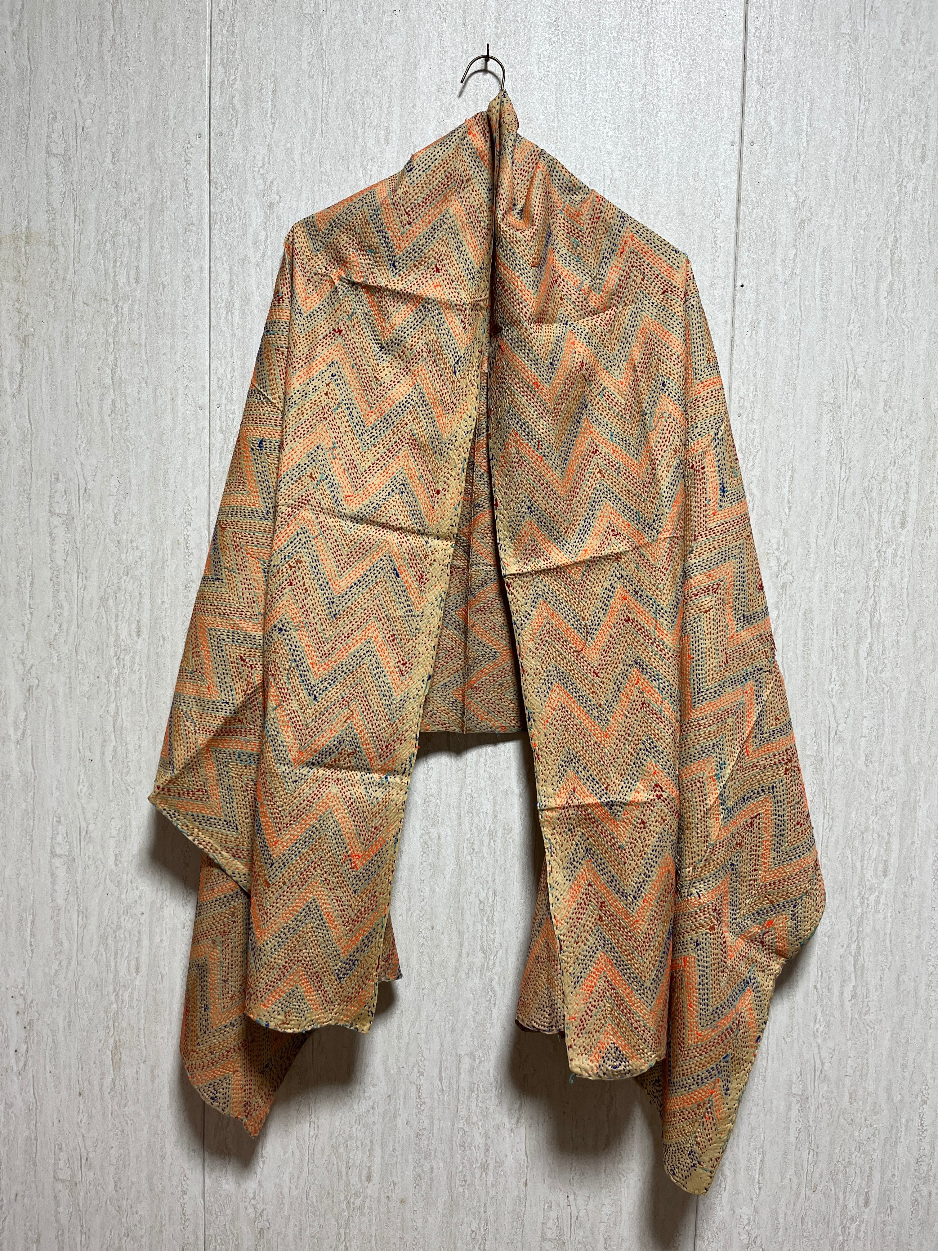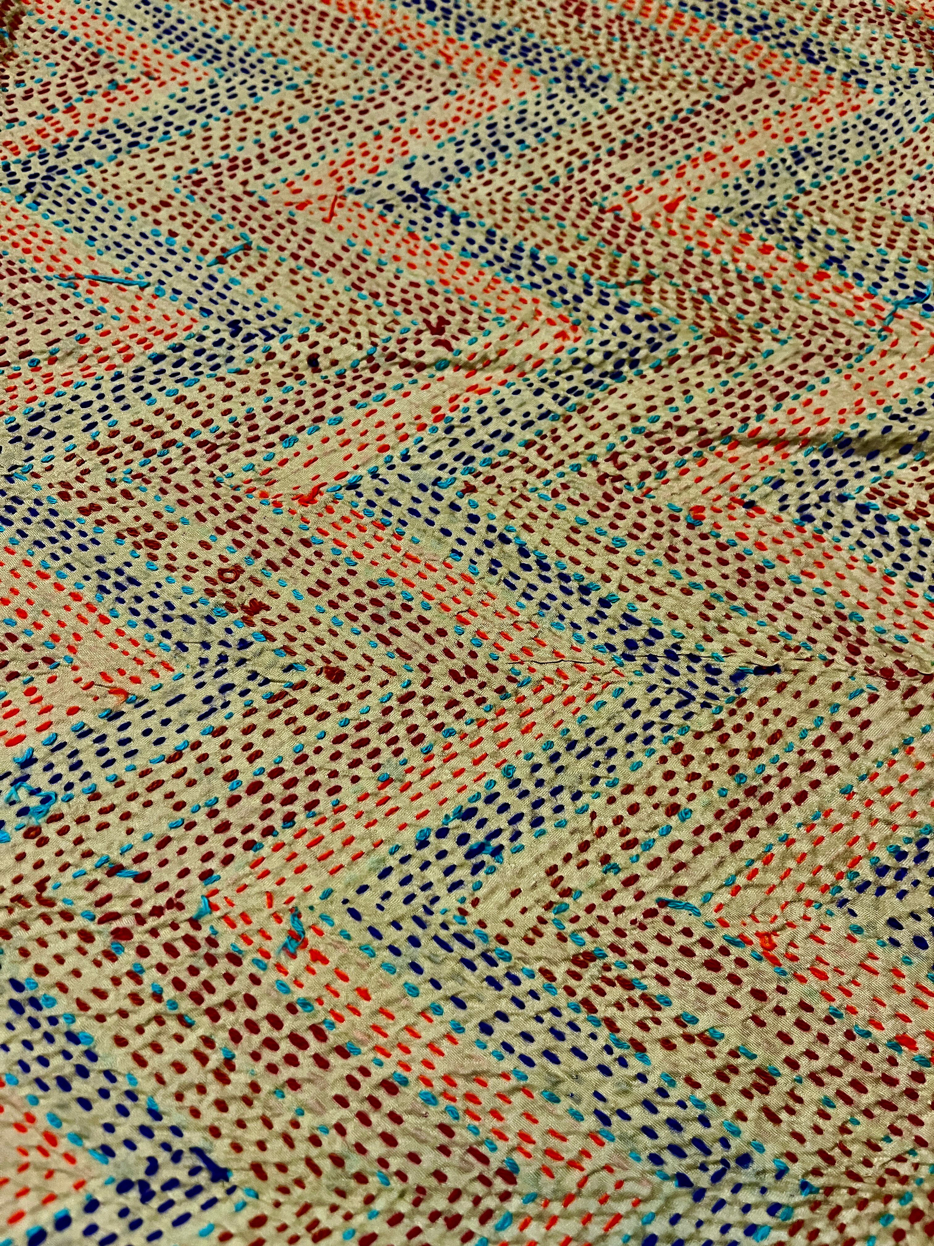 【インド】オールドサリーのカンタ刺繍リバーシブルストール&マルチカバー(国内送料無料)