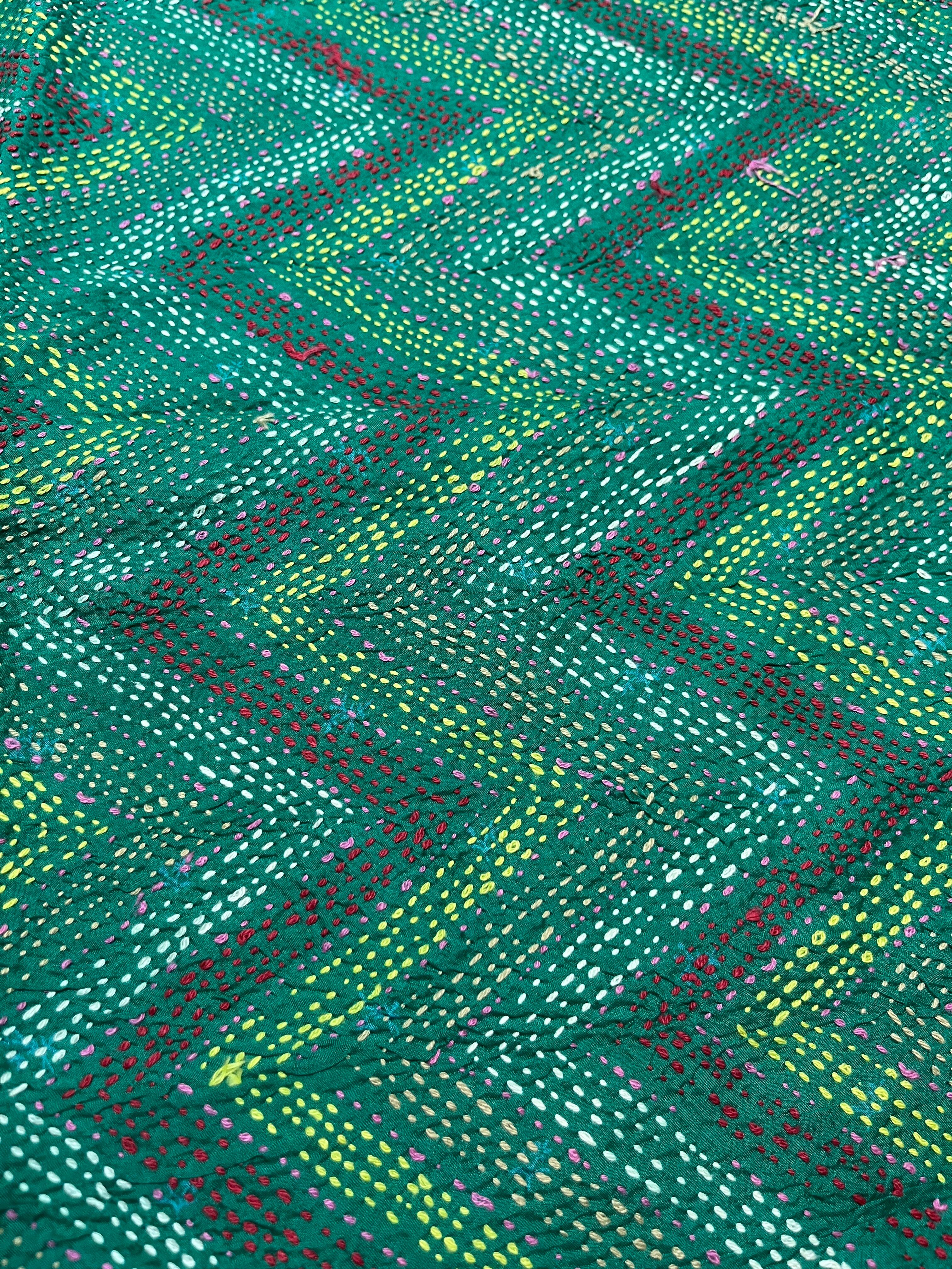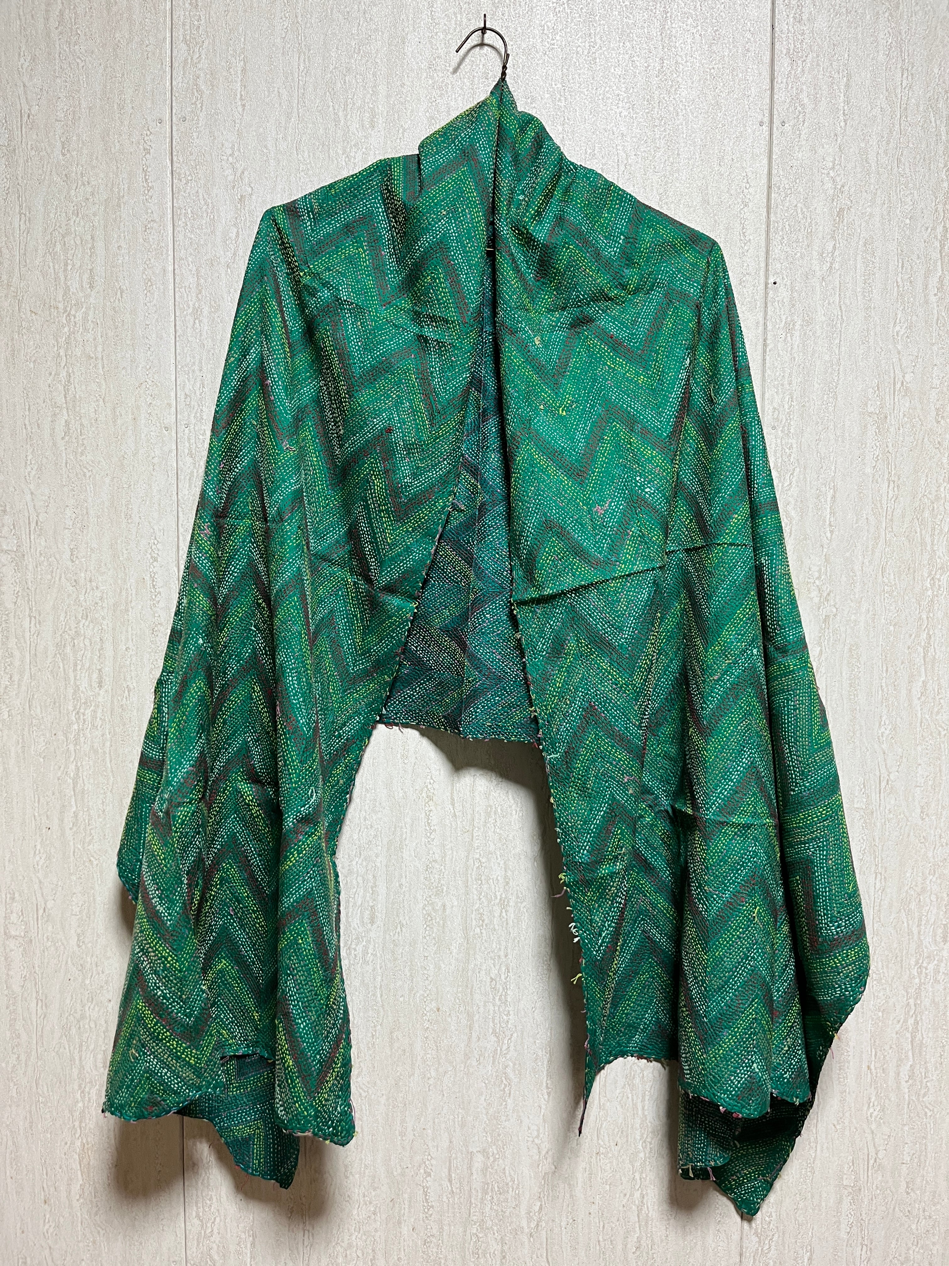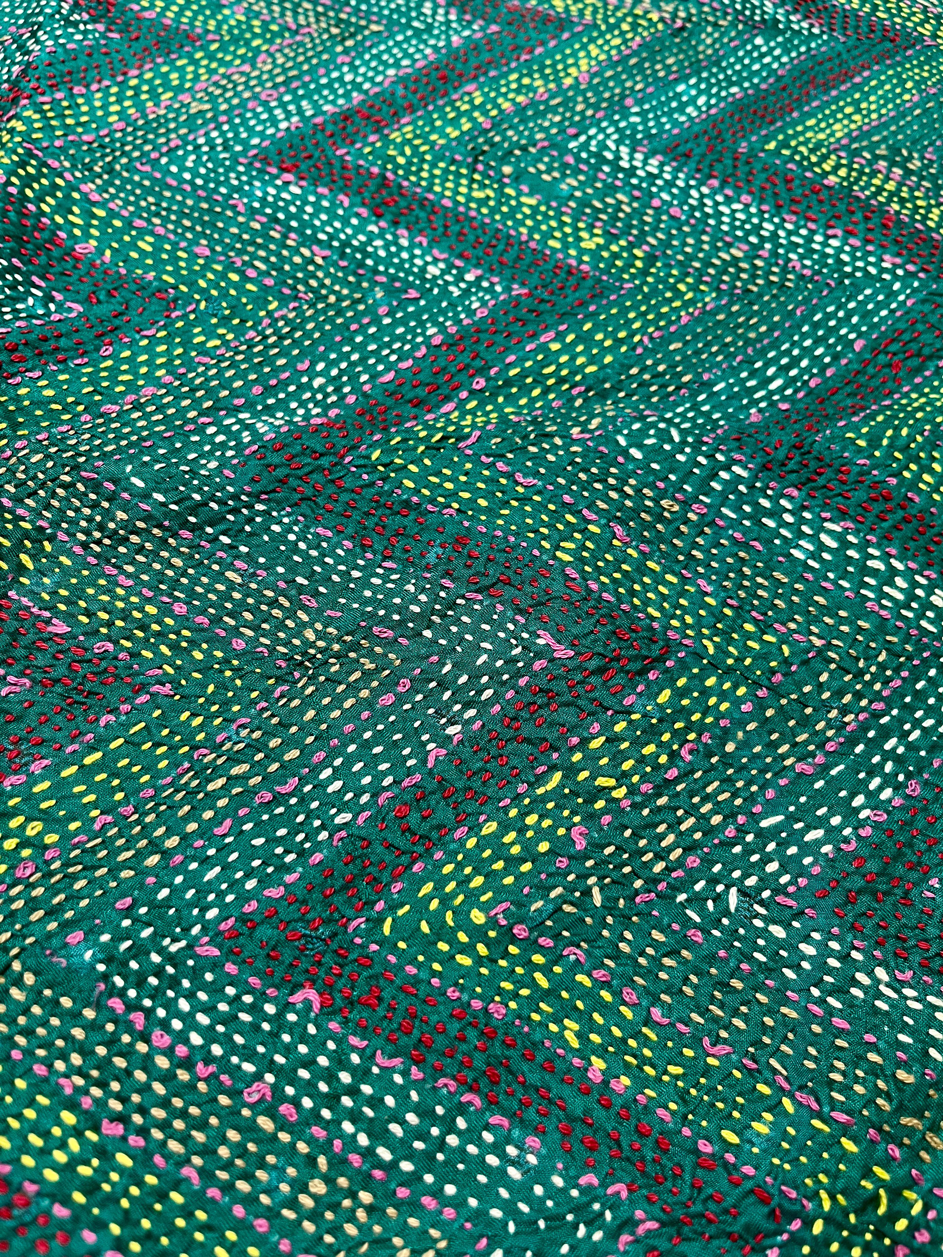 【インド】オールドサリーのカンタ刺繍リバーシブルストール&マルチカバー(国内送料無料)