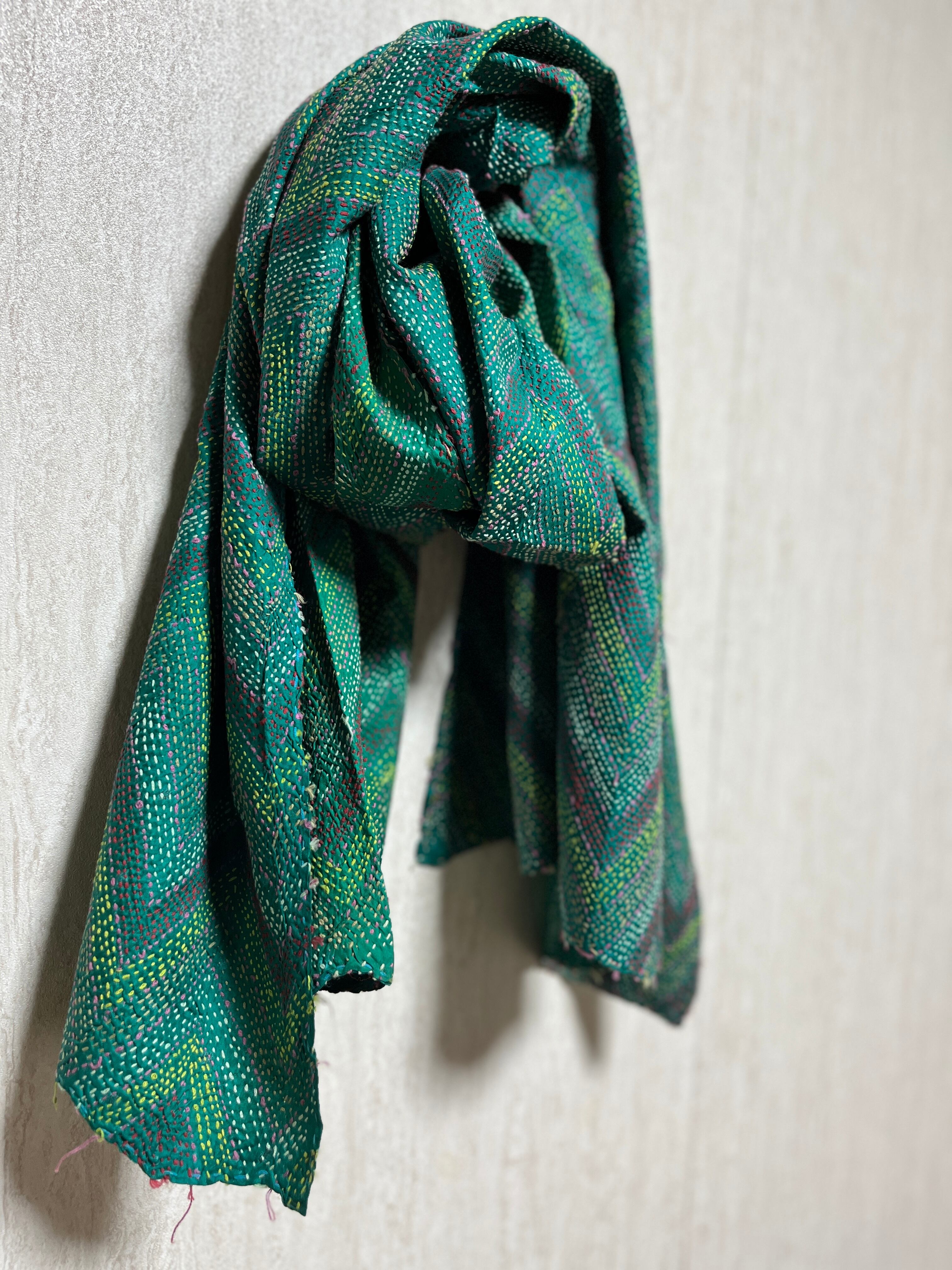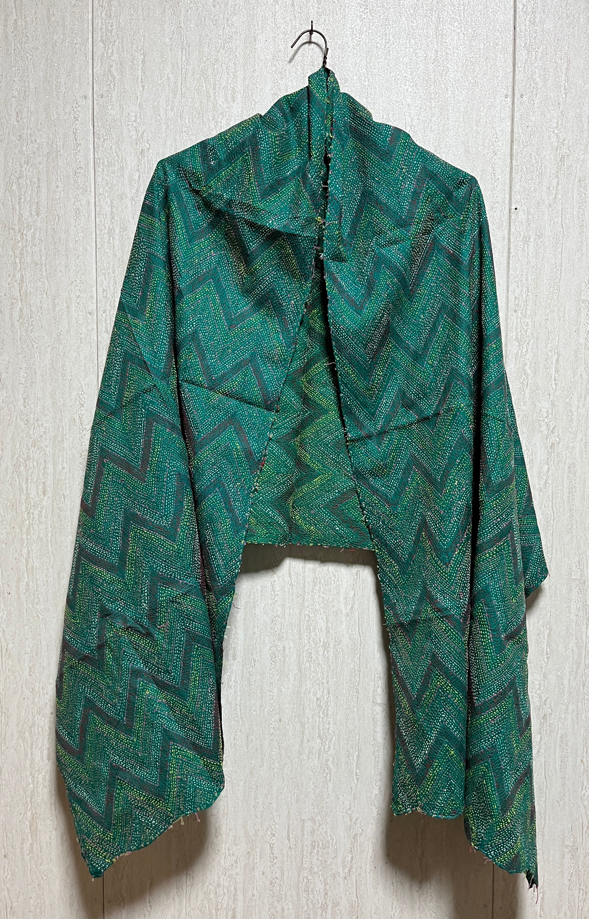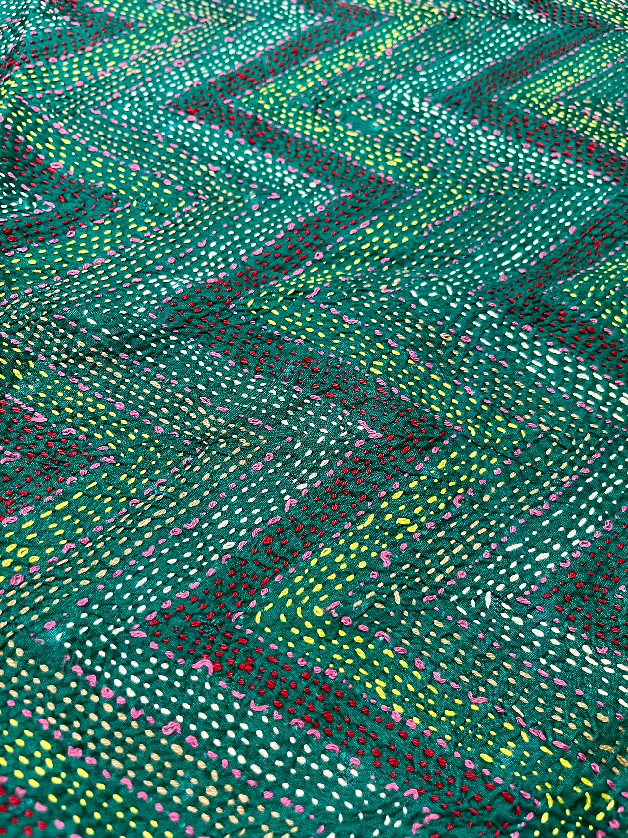 【インド】オールドサリーのカンタ刺繍リバーシブルストール&マルチカバー(国内送料無料)