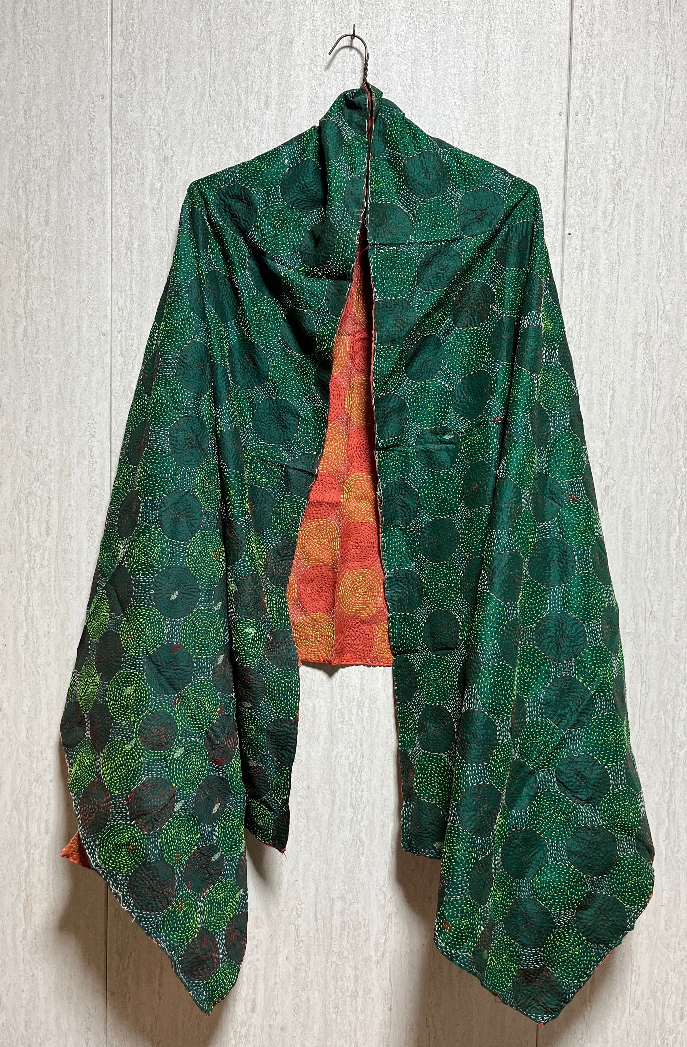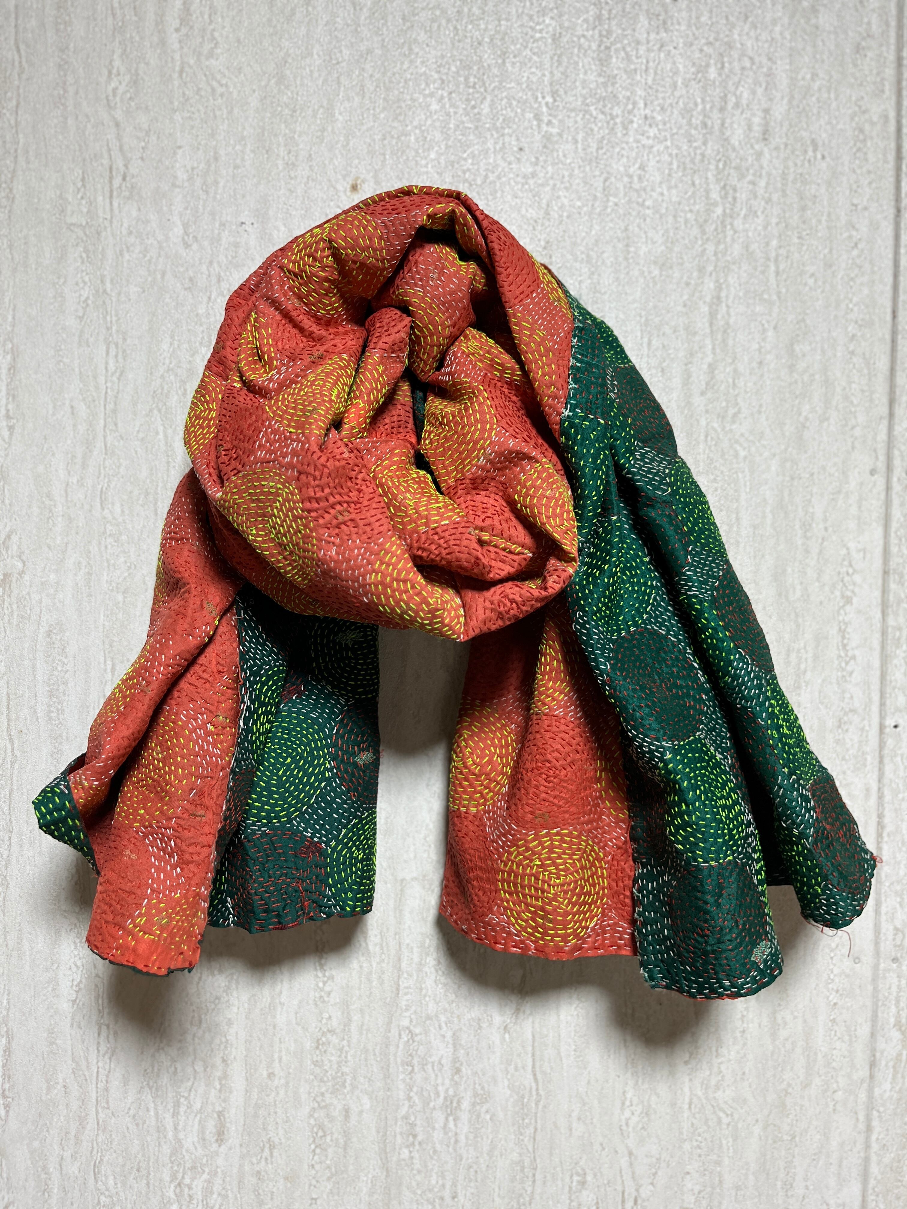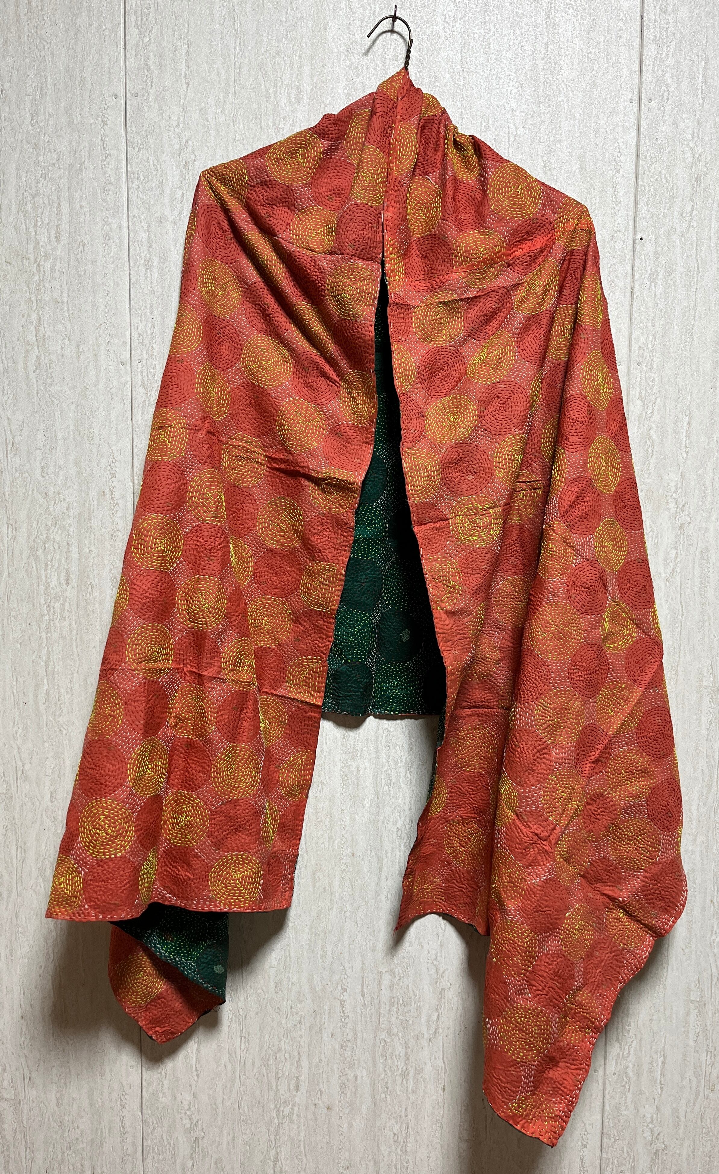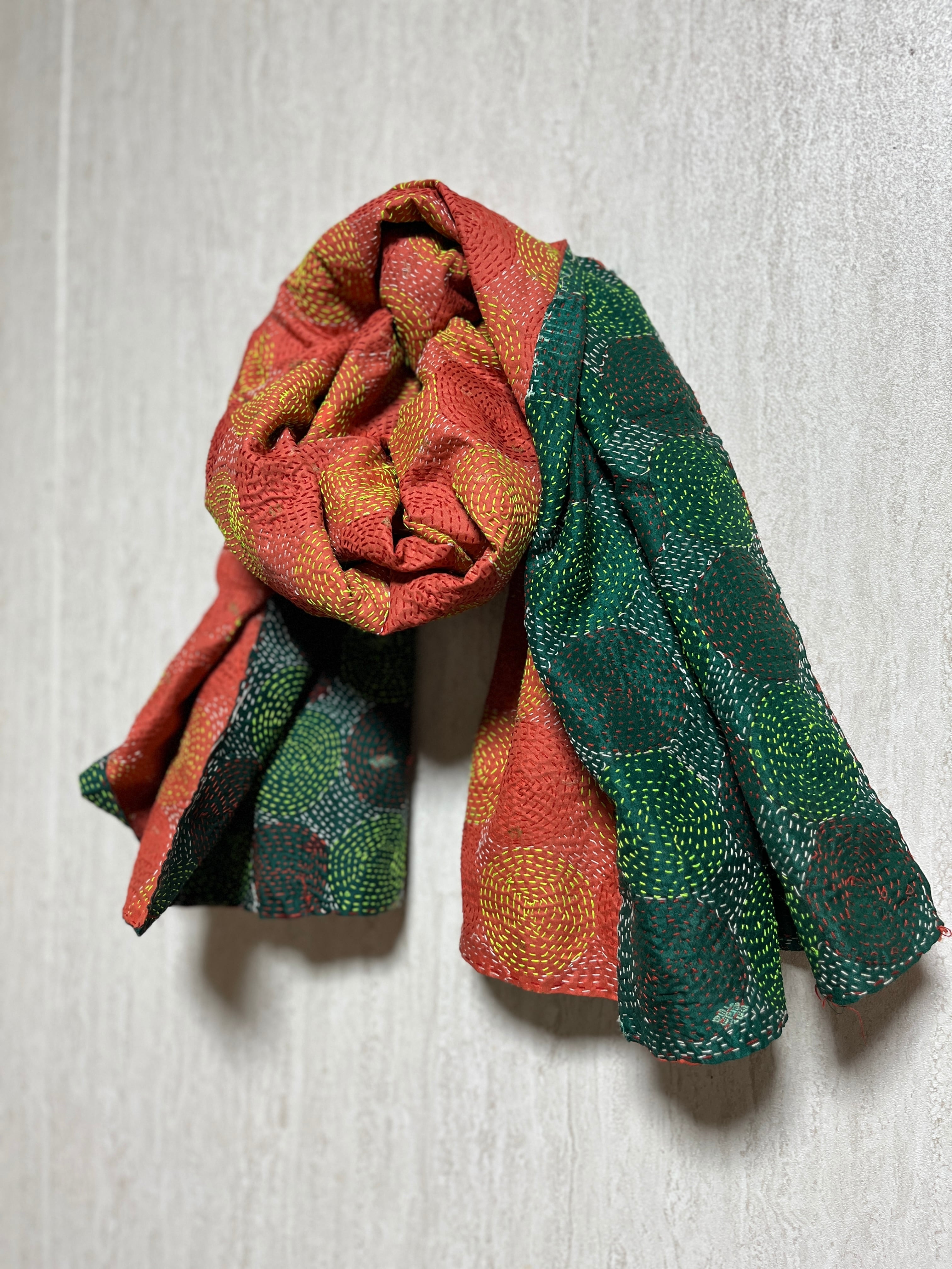 【インド】オールドサリーのカンタ刺繍リバーシブルストール&マルチカバー(国内送料無料)