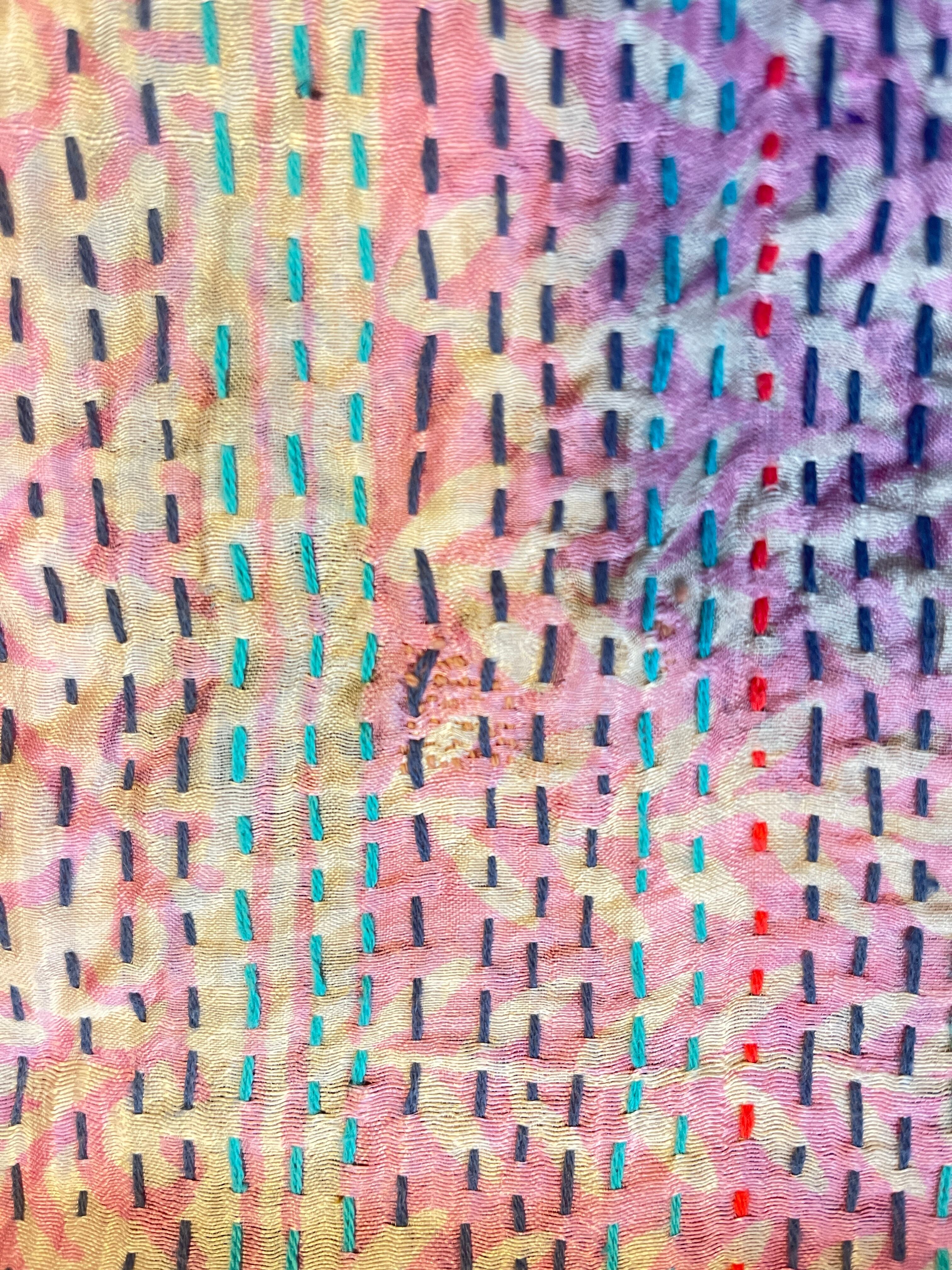 【インド】オールドサリーのカンタ刺繍リバーシブルストール&マルチカバー12(国内送料無料)
