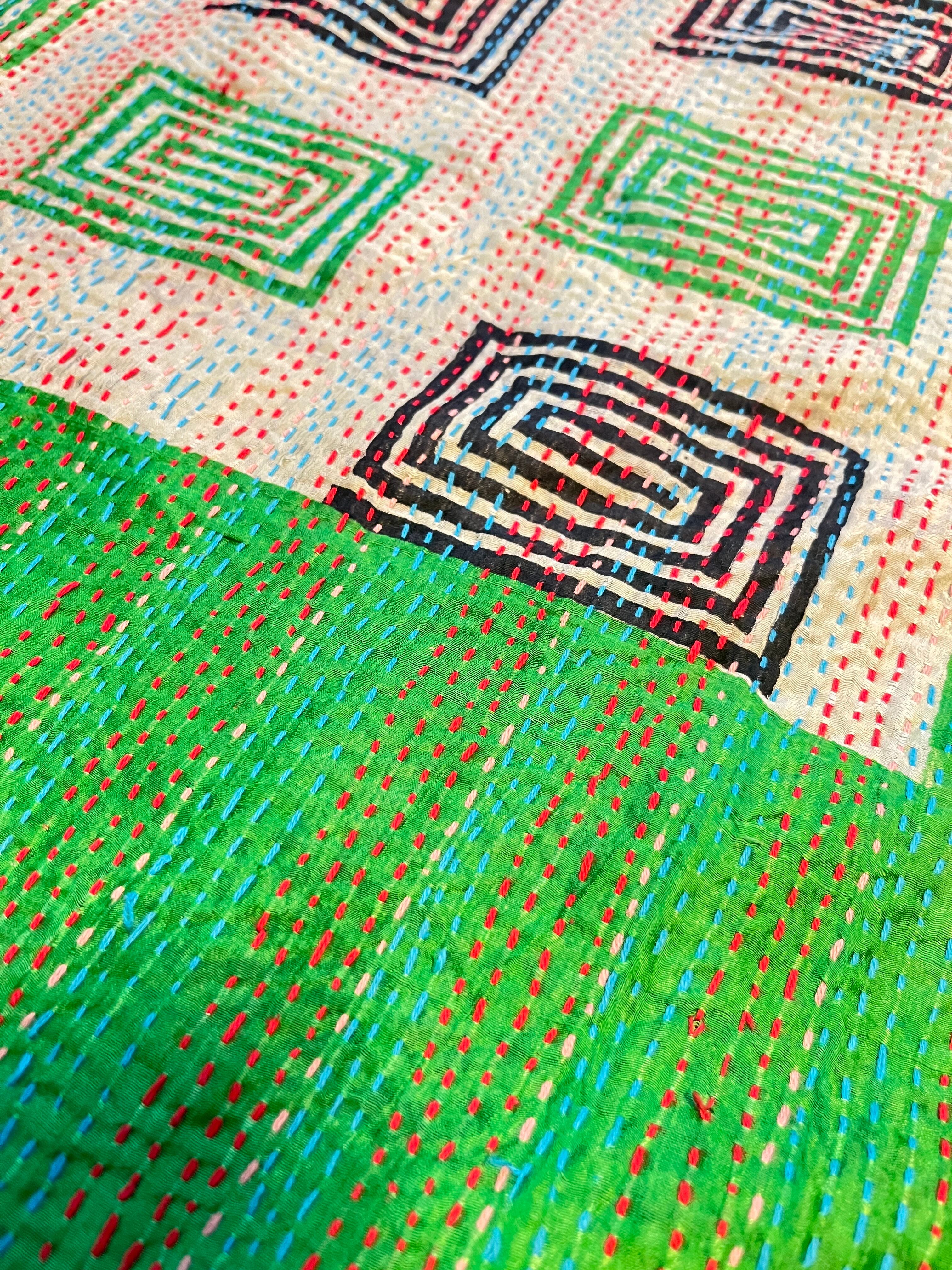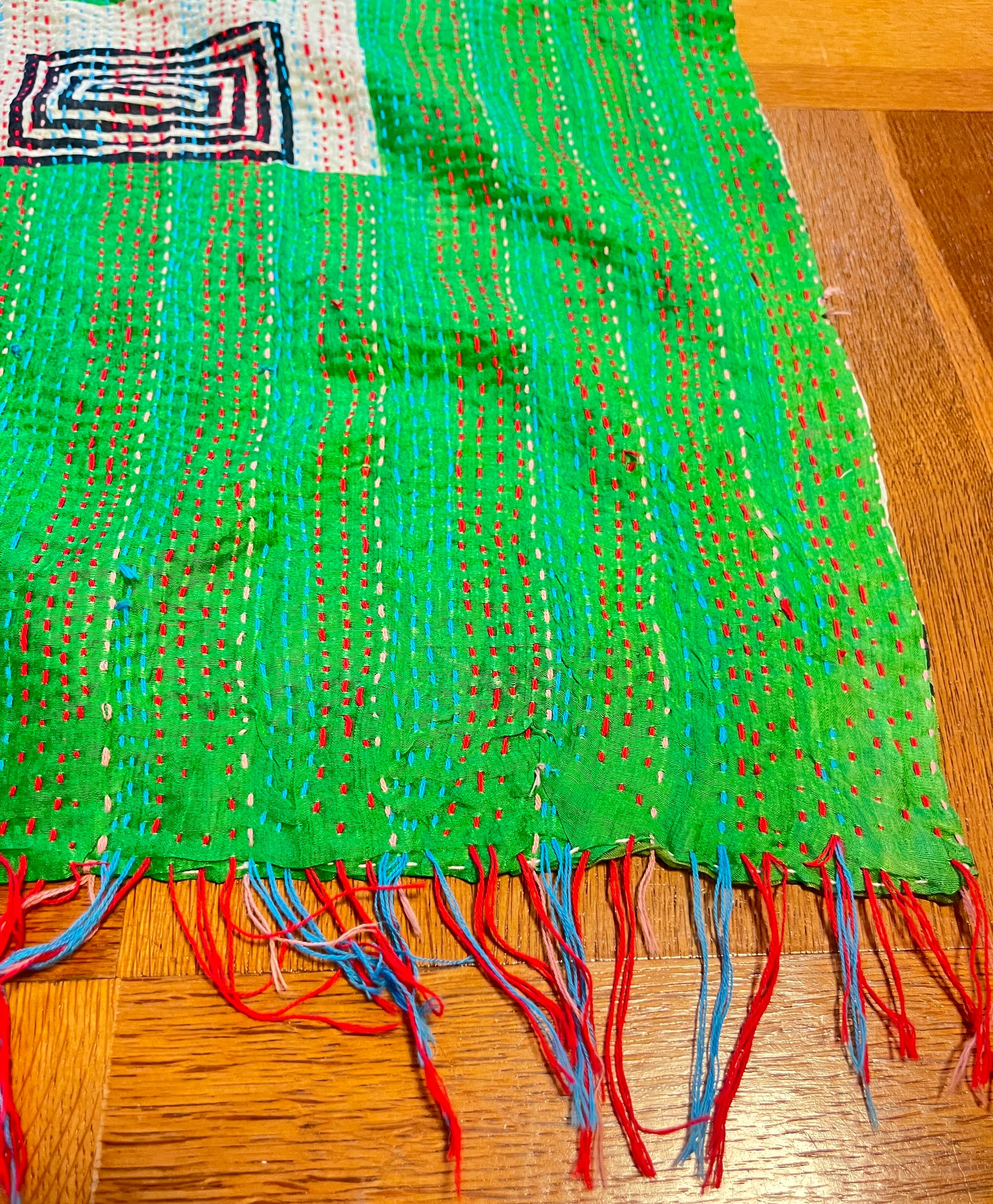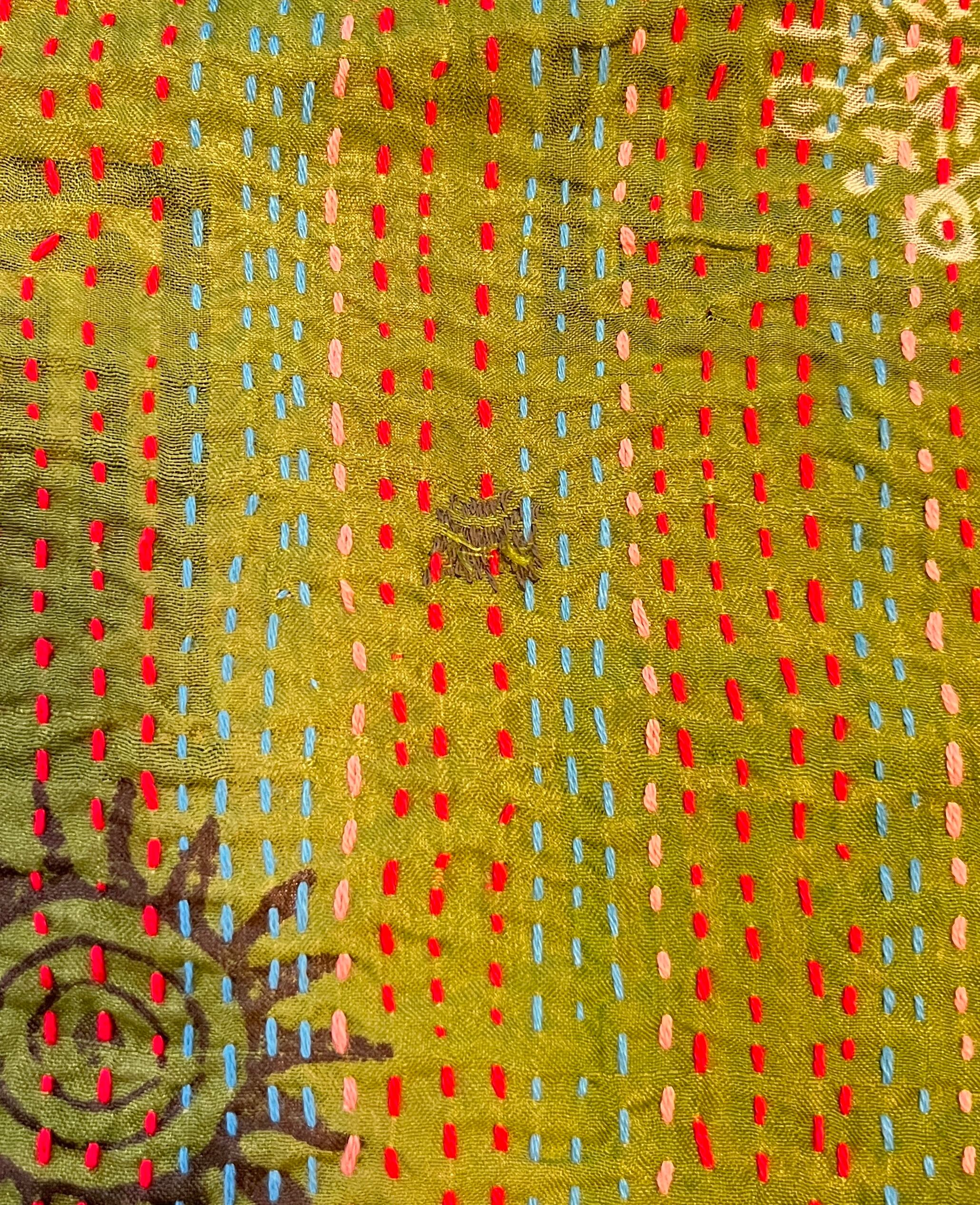 【インド】オールドサリーのカンタ刺繍リバーシブルストール&マルチカバー16(国内送料無料)