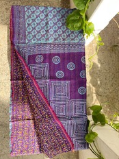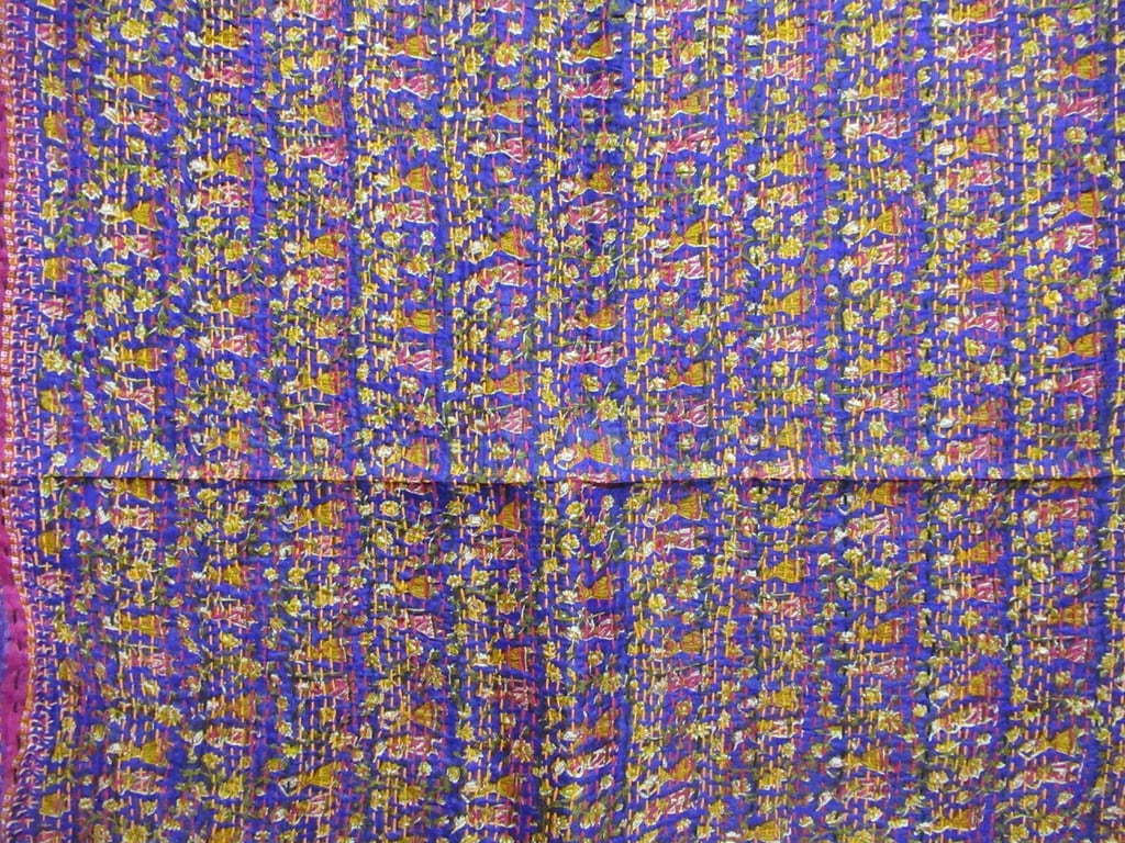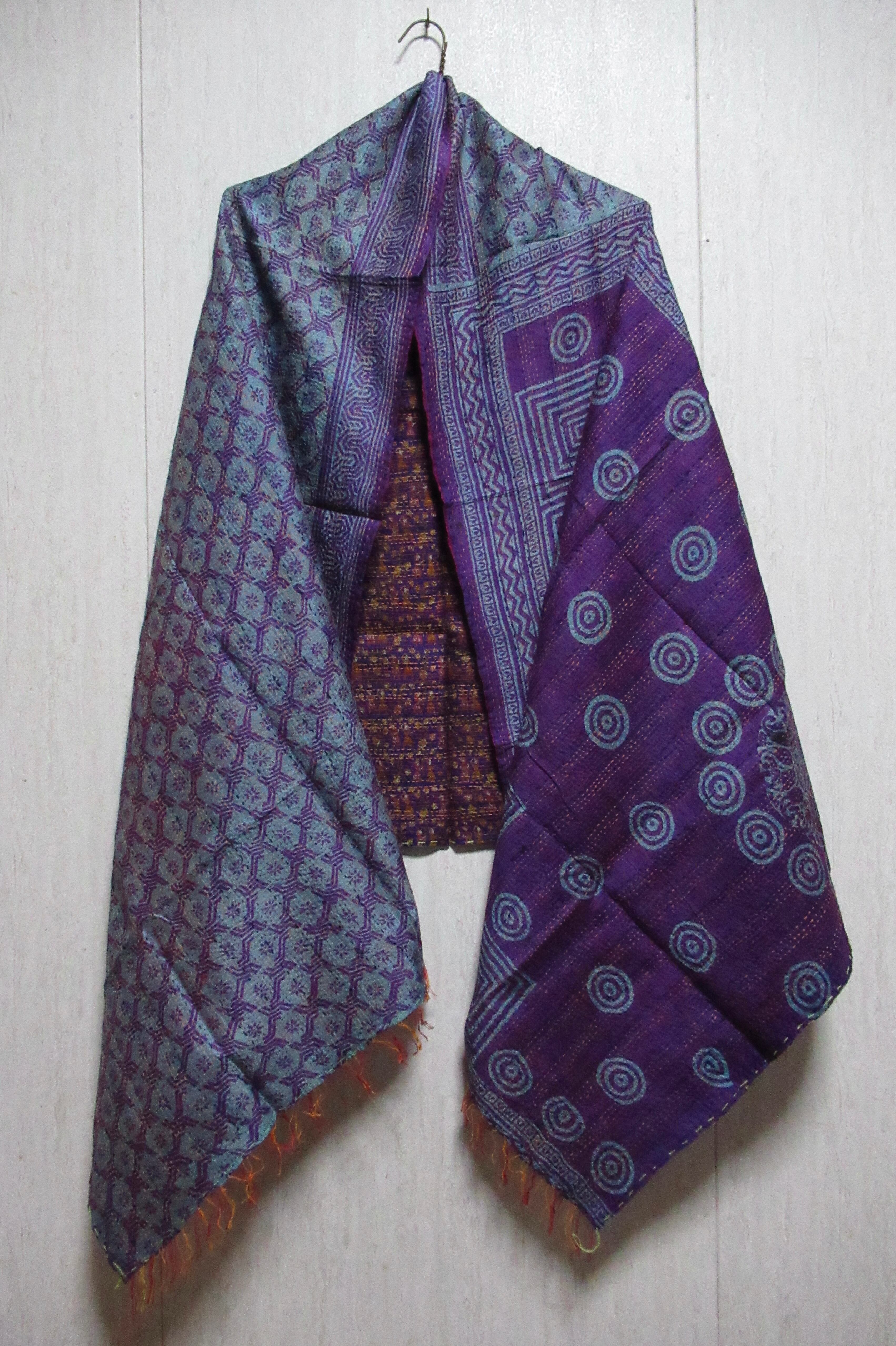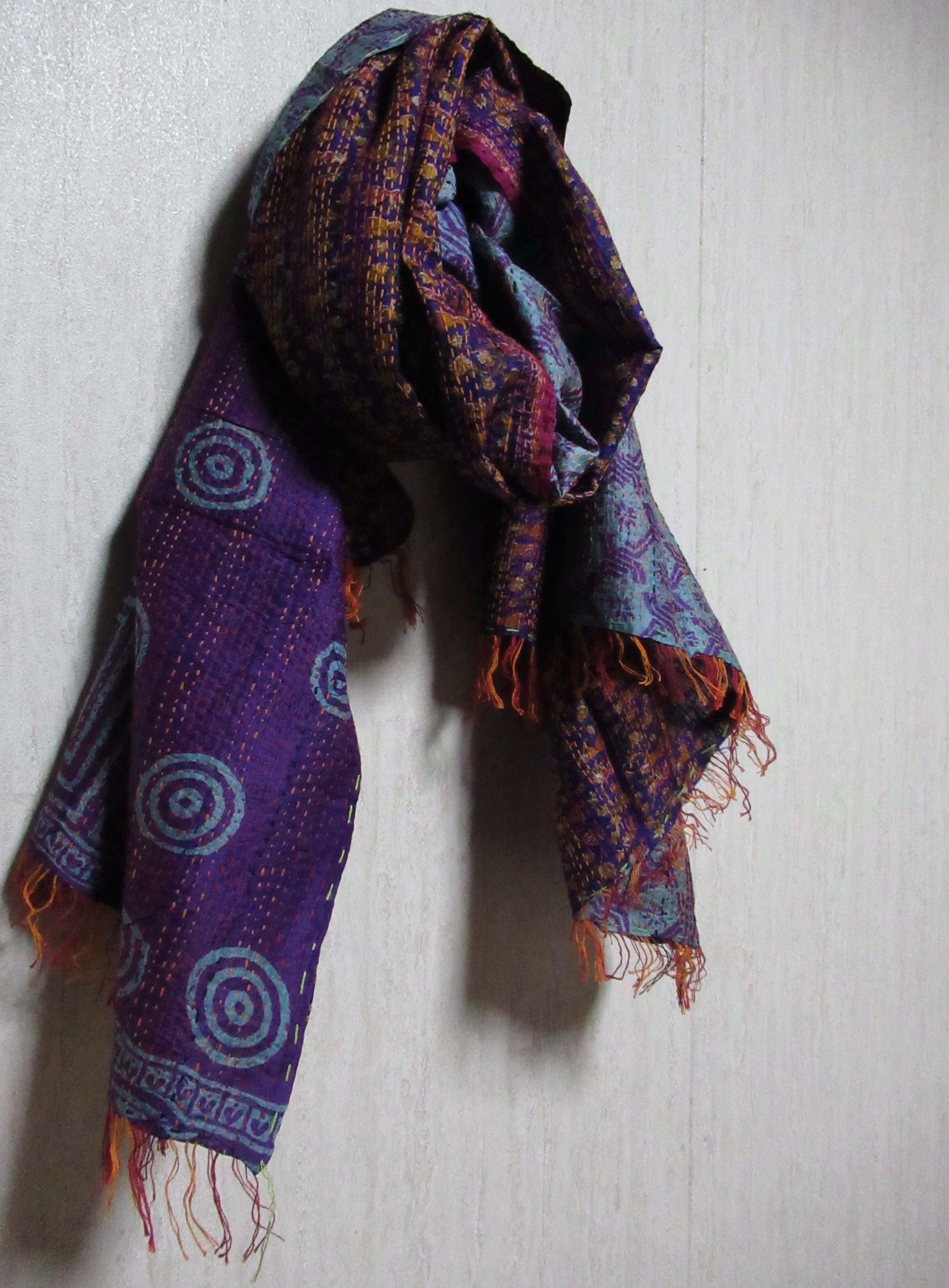 【インド】オールドサリーのカンタ刺繍リバーシブルストール&マルチカバー(国内送料無料)