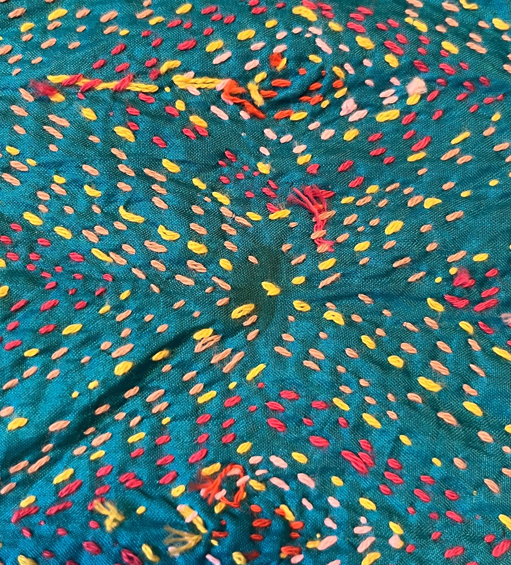 【インド】オールドサリーのカンタ刺繍リバーシブルストール&マルチカバー Small1(国内送料無料)