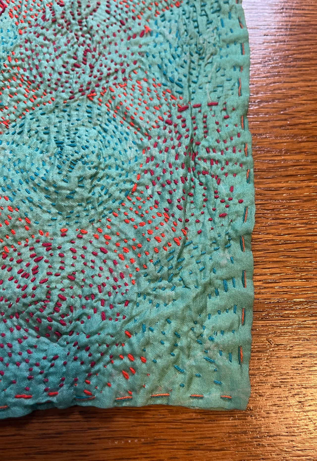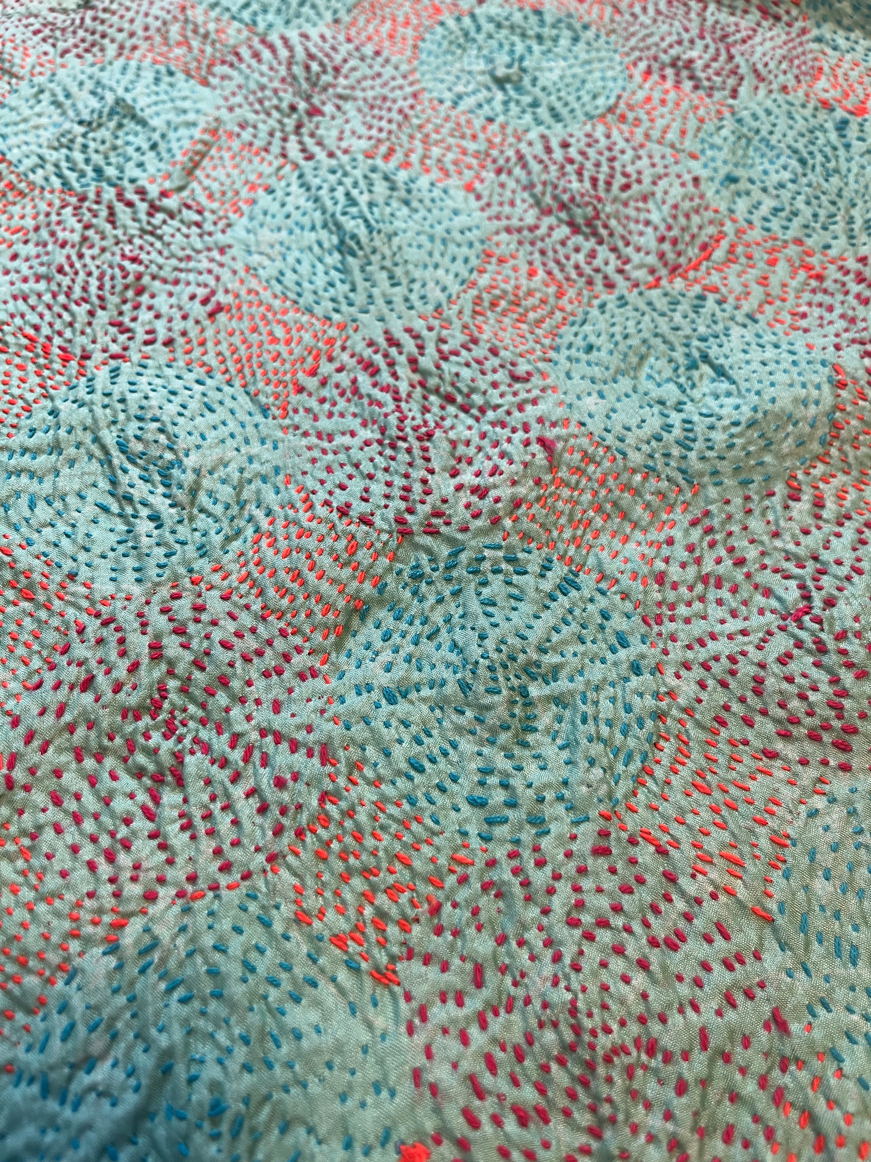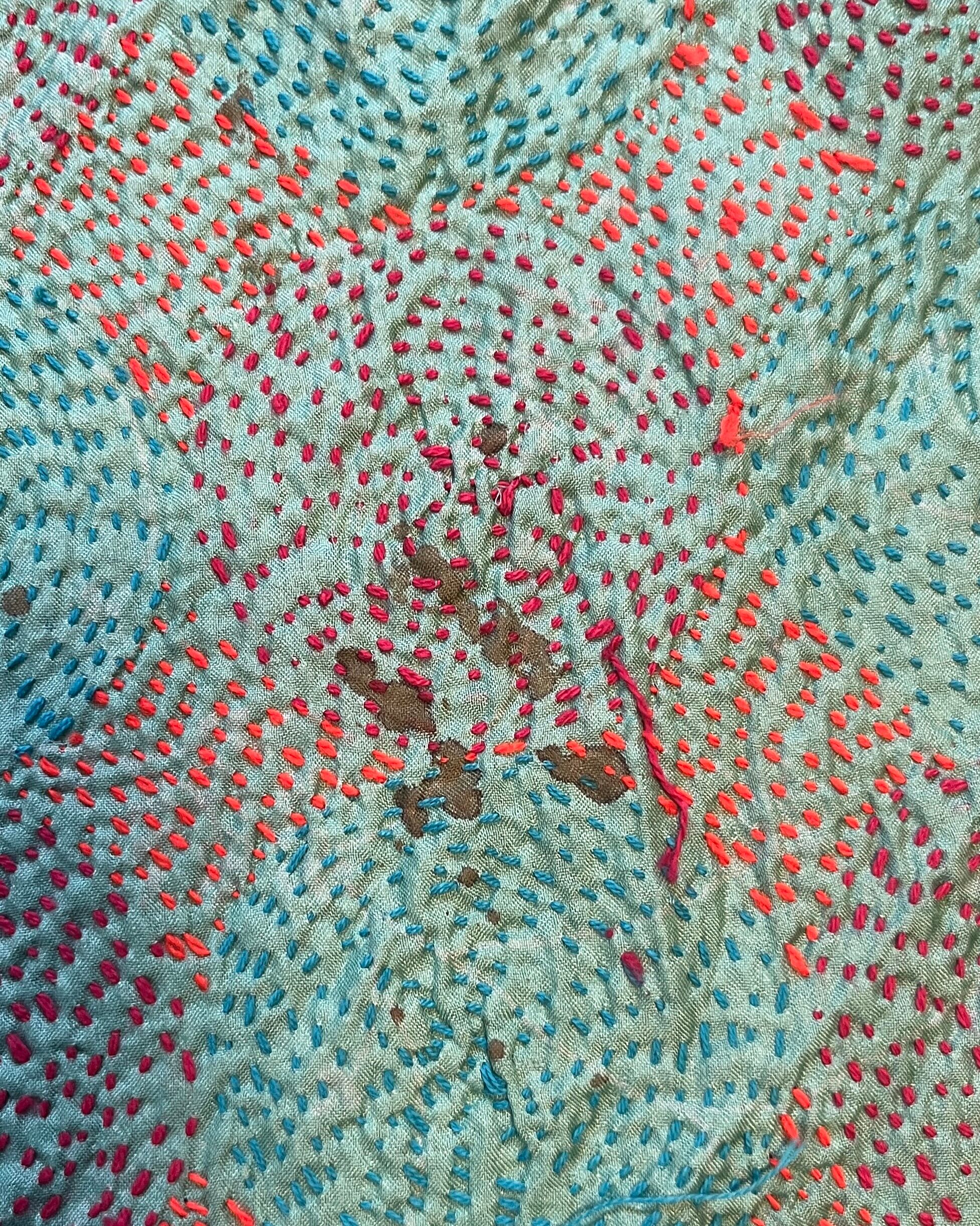 【インド】オールドサリーのカンタ刺繍リバーシブルストール&マルチカバー Small2(国内送料無料)
