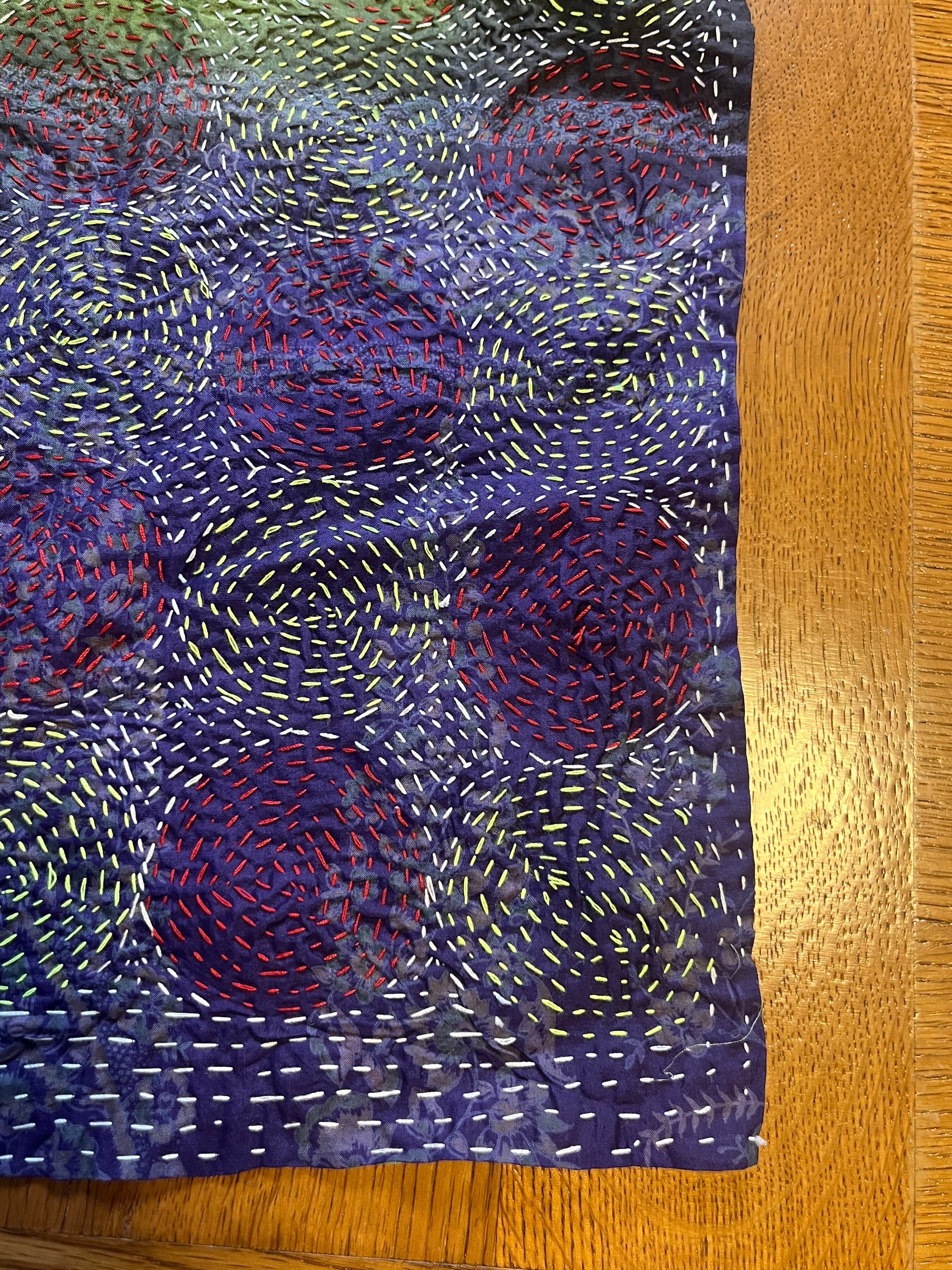 【インド】オールドサリーのカンタ刺繍リバーシブルストール&マルチカバー Small4(国内送料無料)