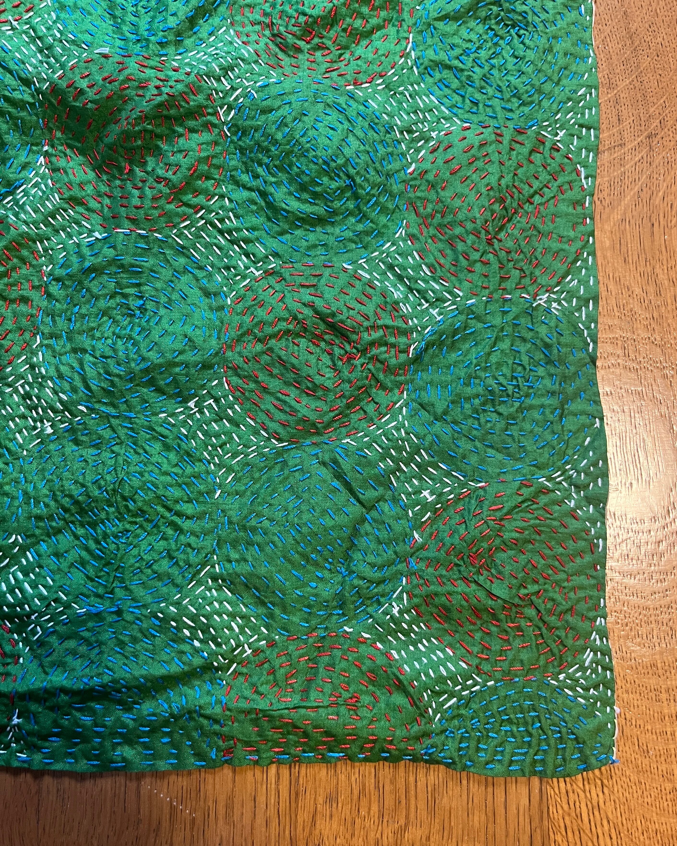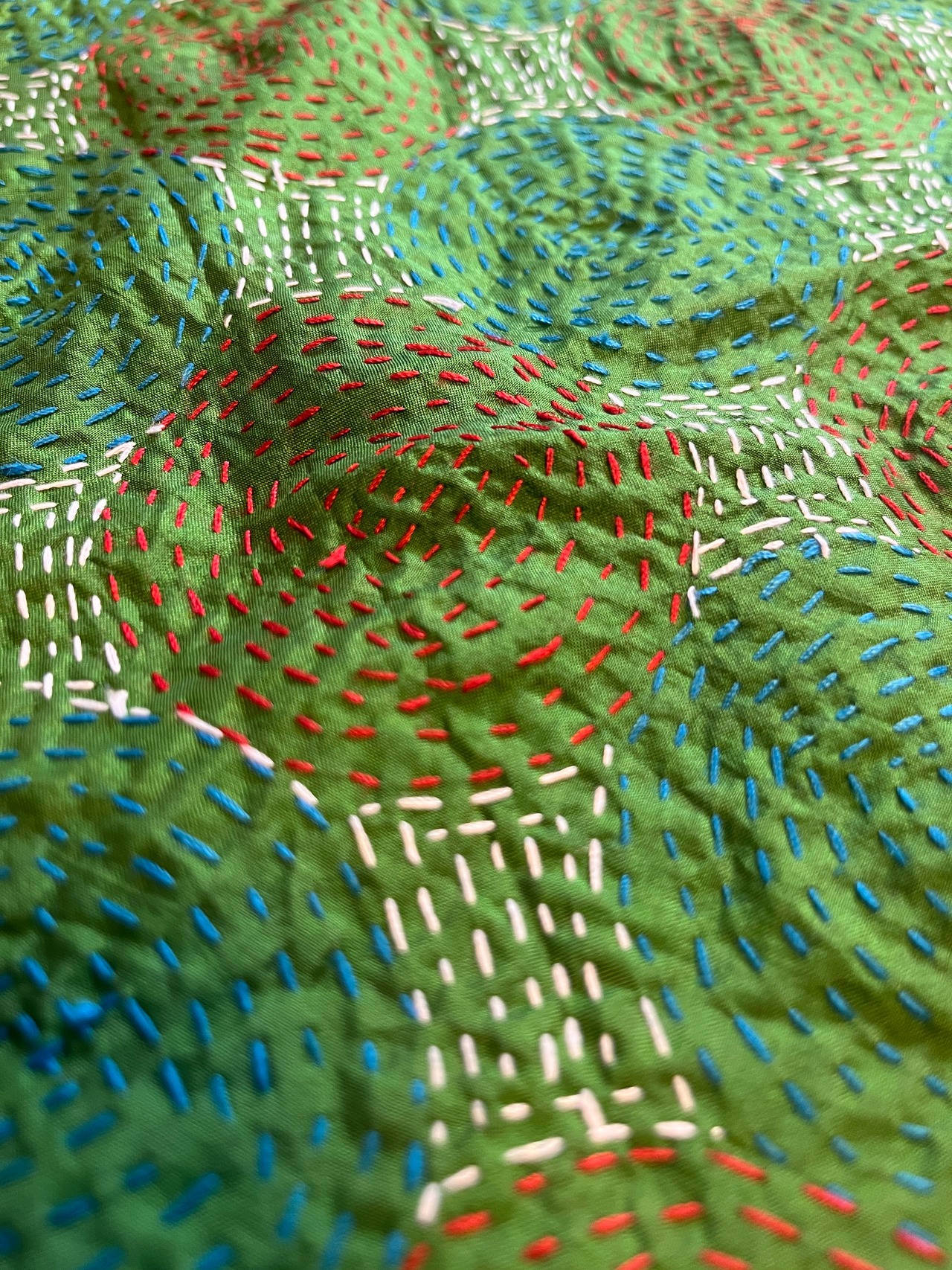 【インド】オールドサリーのカンタ刺繍リバーシブルストール&マルチカバー Small5(国内送料無料)