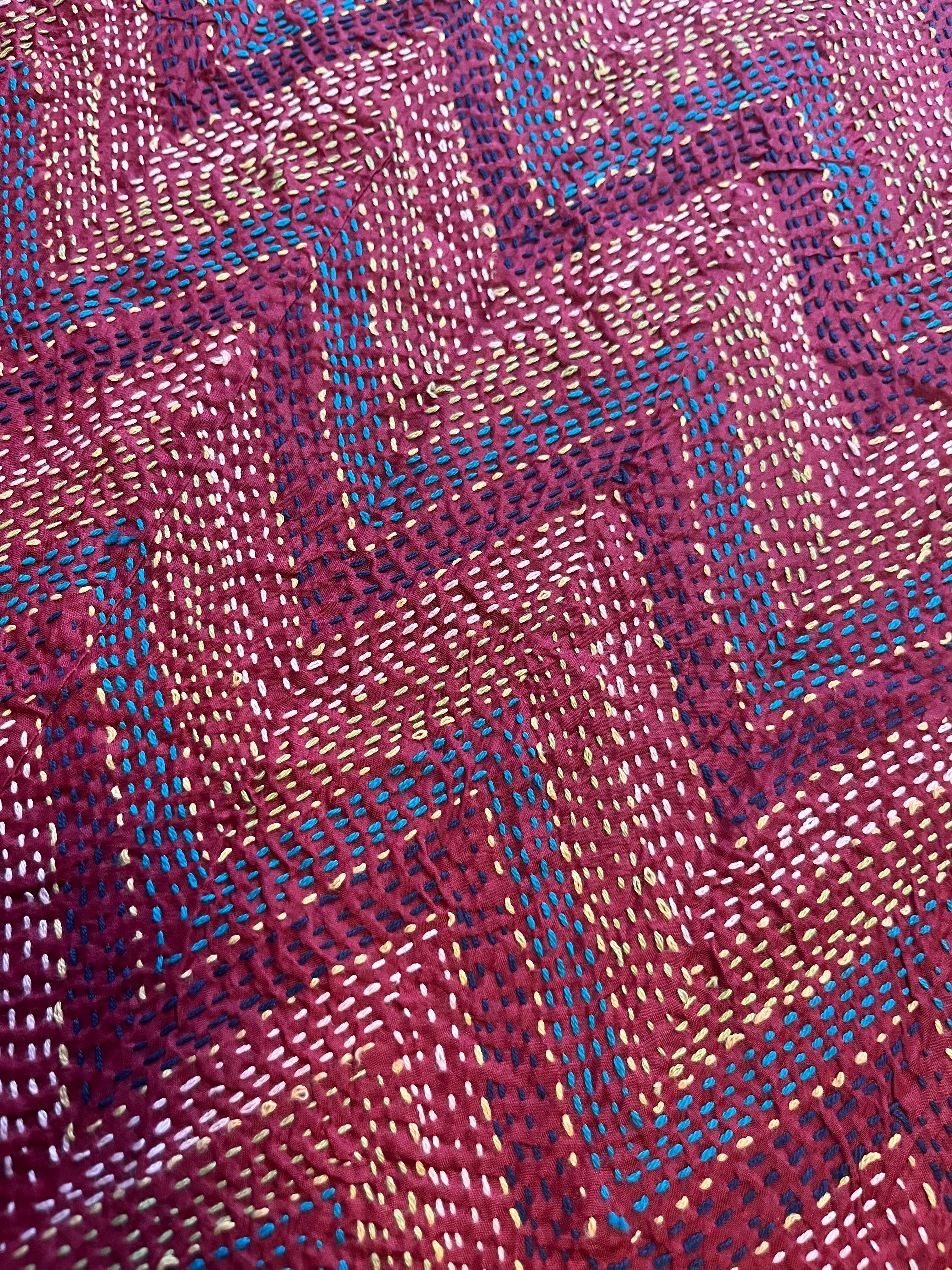 【インド】オールドサリーのカンタ刺繍リバーシブルストール&マルチカバー Small8(国内送料無料)