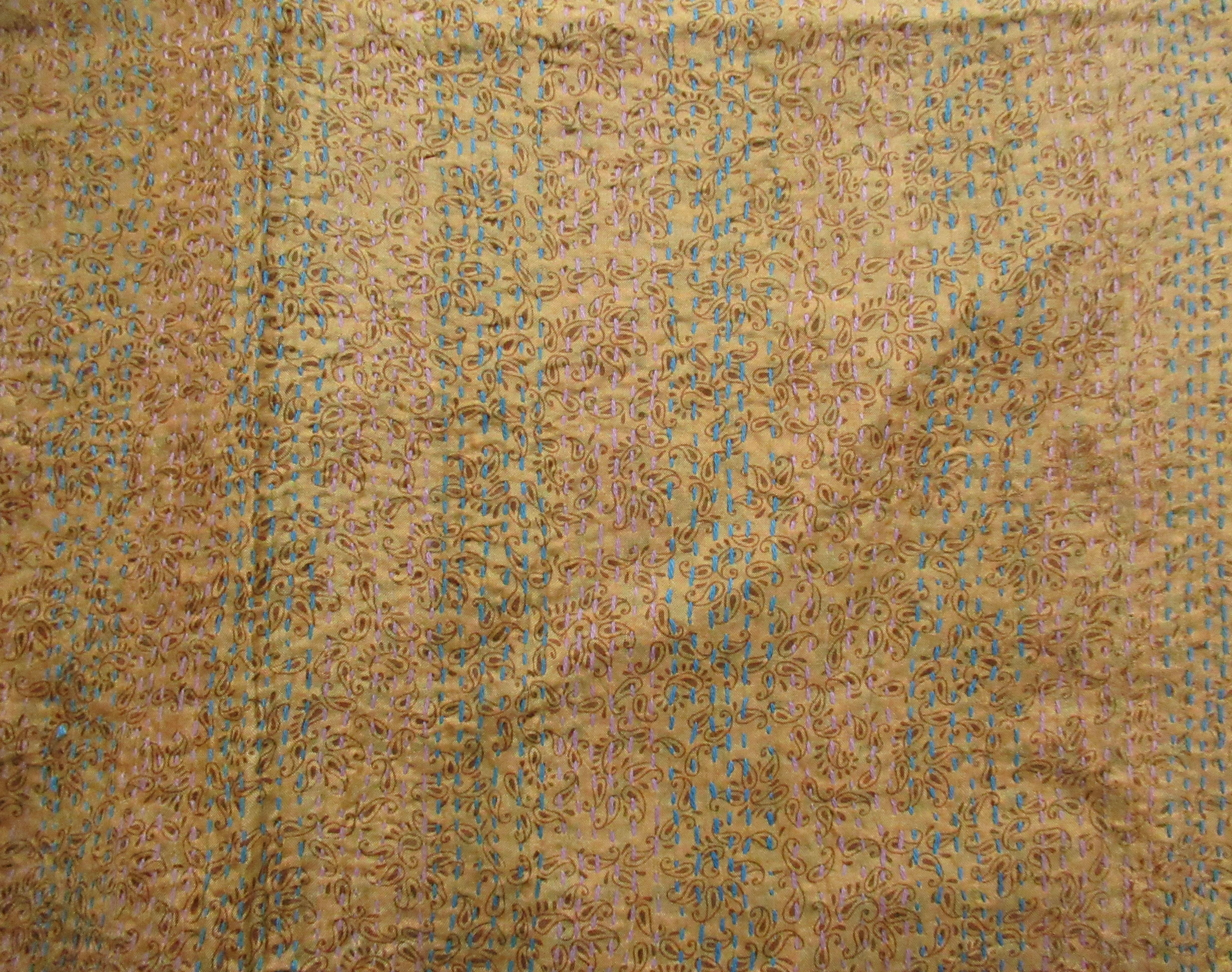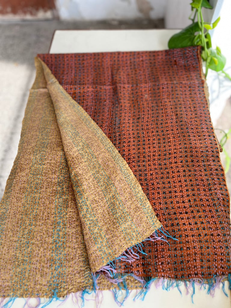 【インド】オールドサリーのカンタ刺繍リバーシブルストール&マルチカバー Small(国内送料無料)