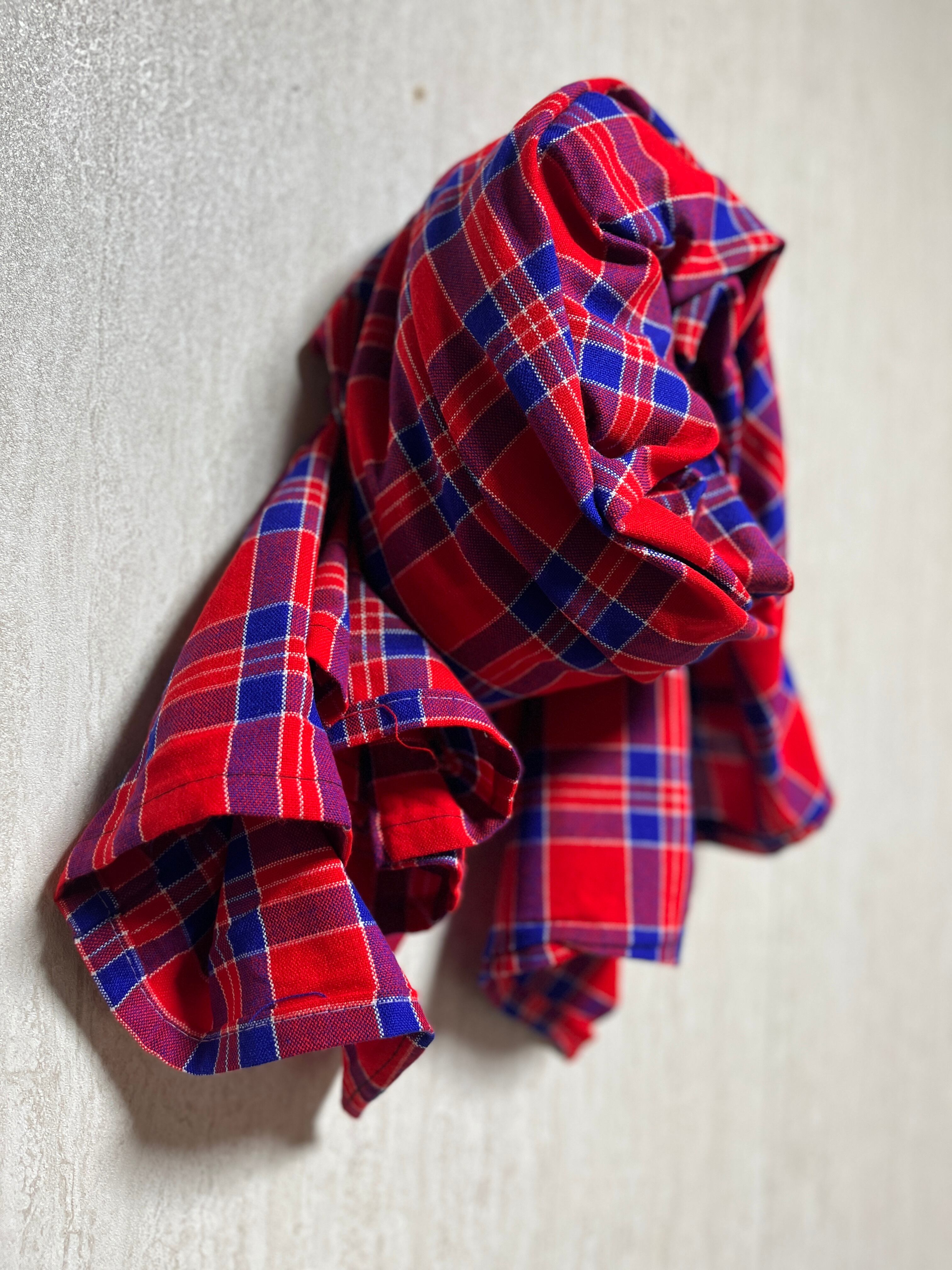 チェックの柄が有名なマサイ族のブランケット「マサイシュカ」。