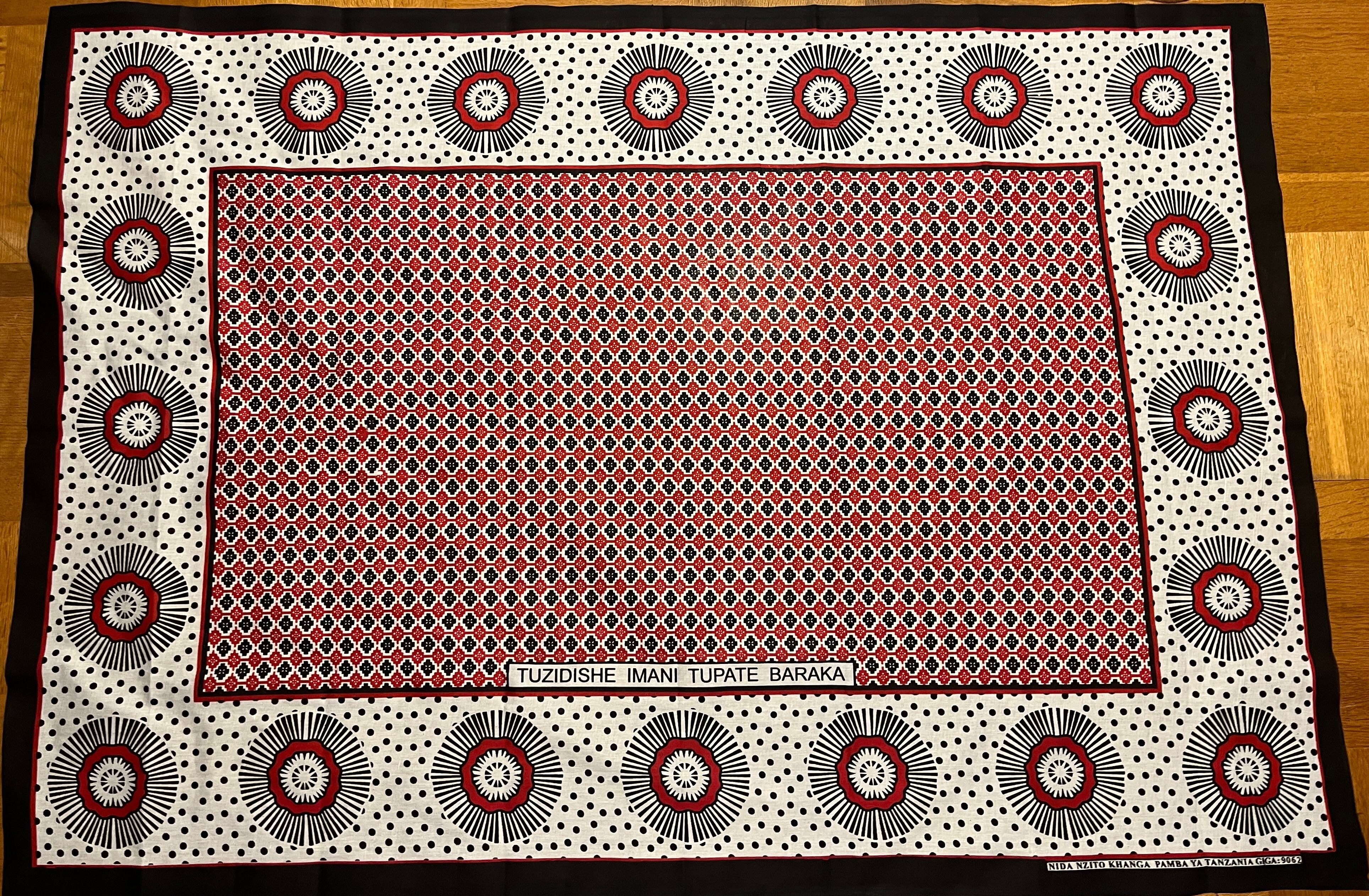 スワヒリ語でホロホロ鳥という意味の布、「カンガ」。
