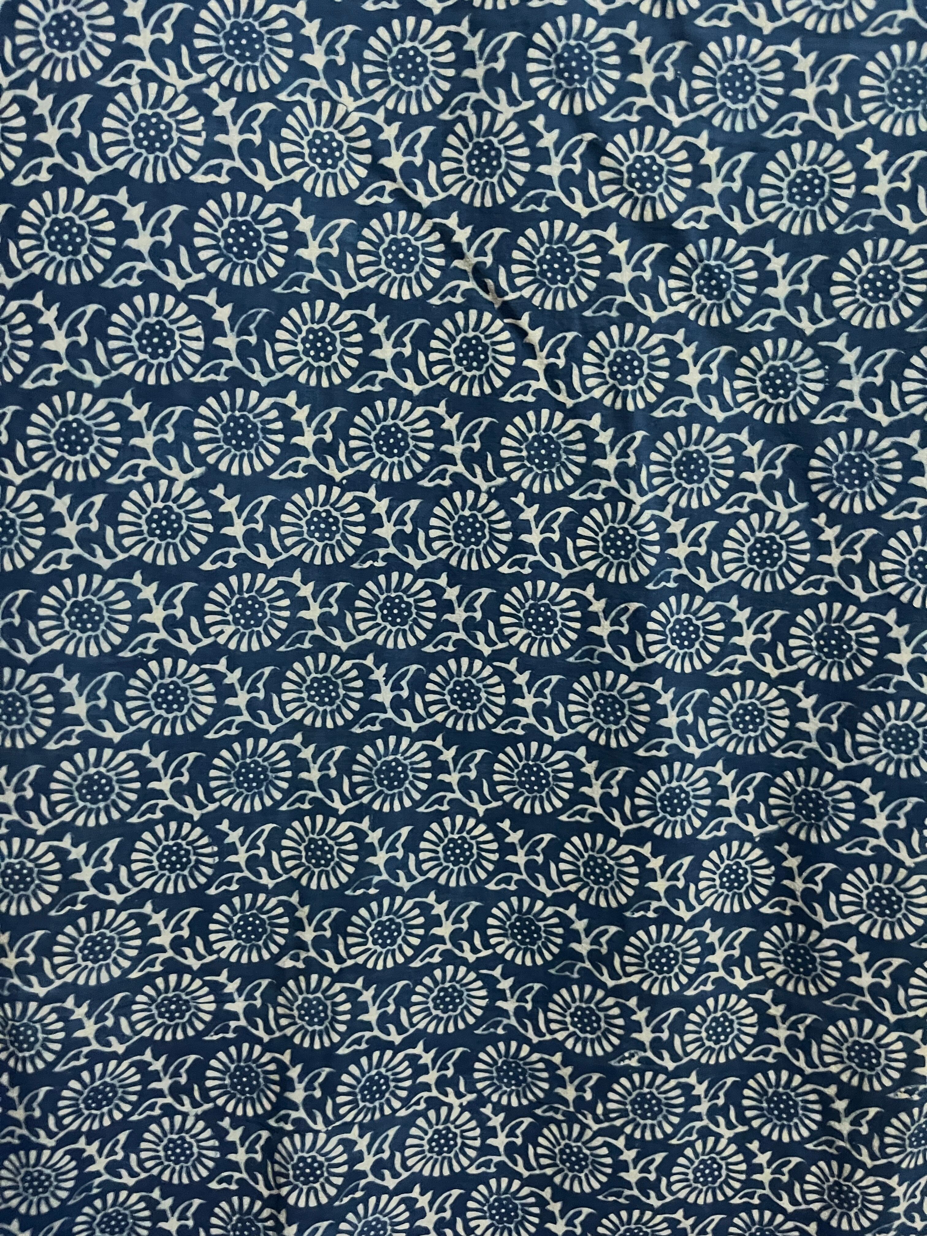 イスラム独特の幾何学模様や花柄が有名で、よく目にするカラフルな明るい色合いのブロックプリントとは違い、藍や茜などの天然染料で染めたシックで落ち着いた色合いが特徴です。