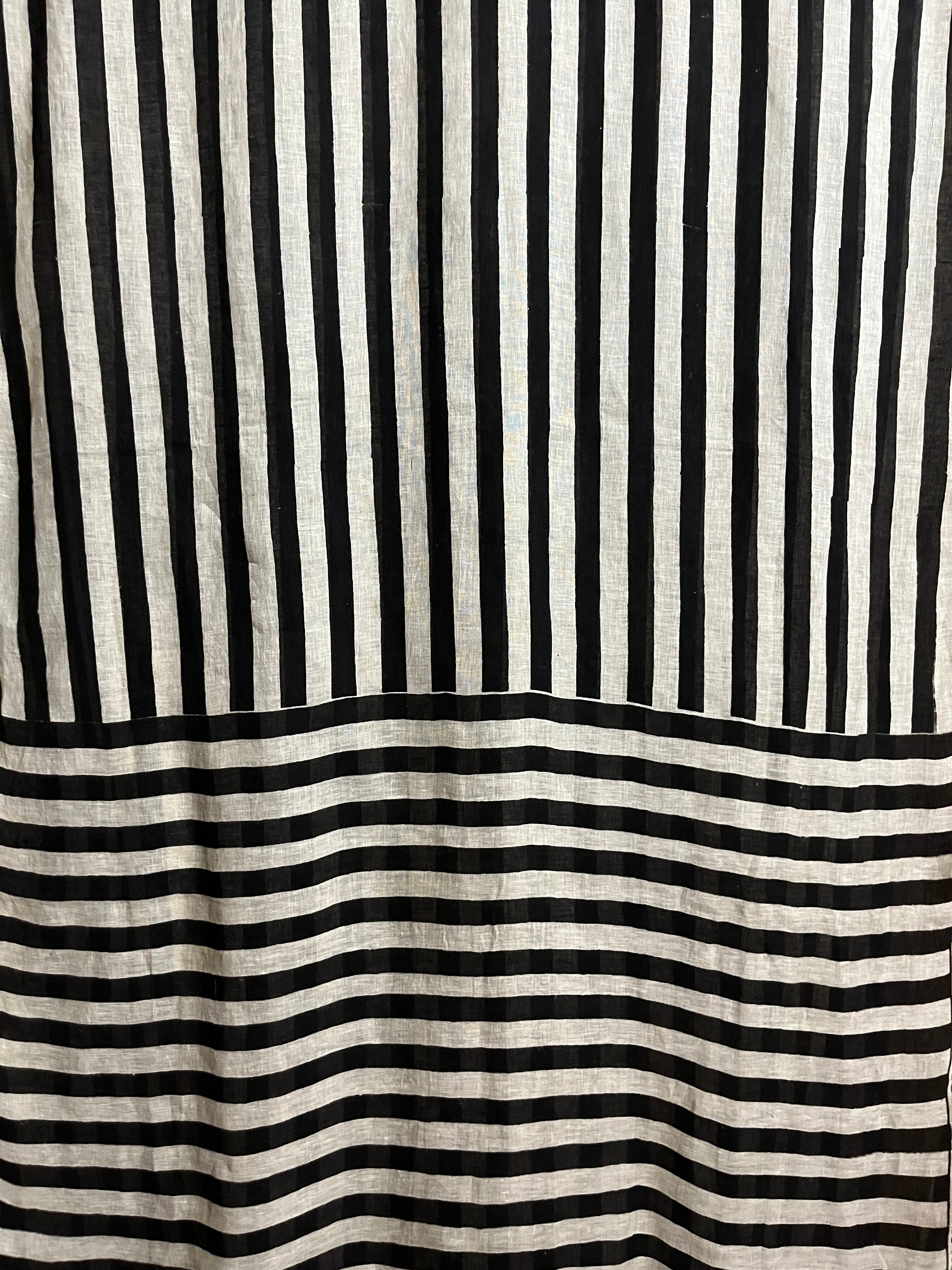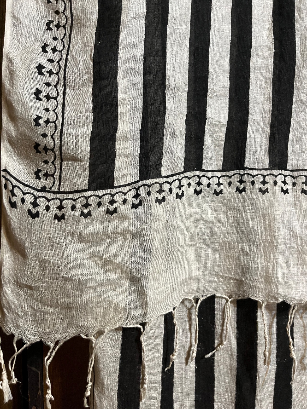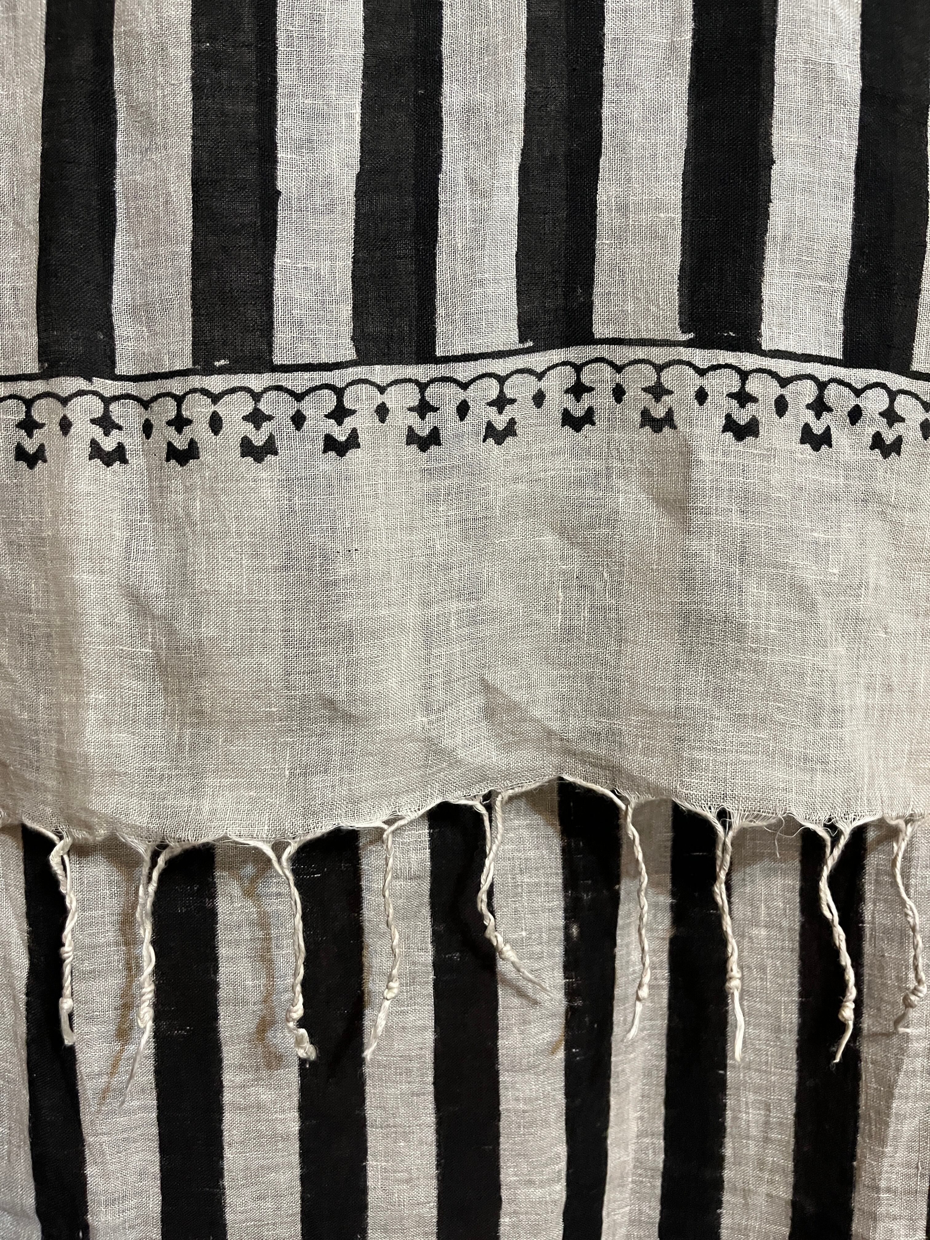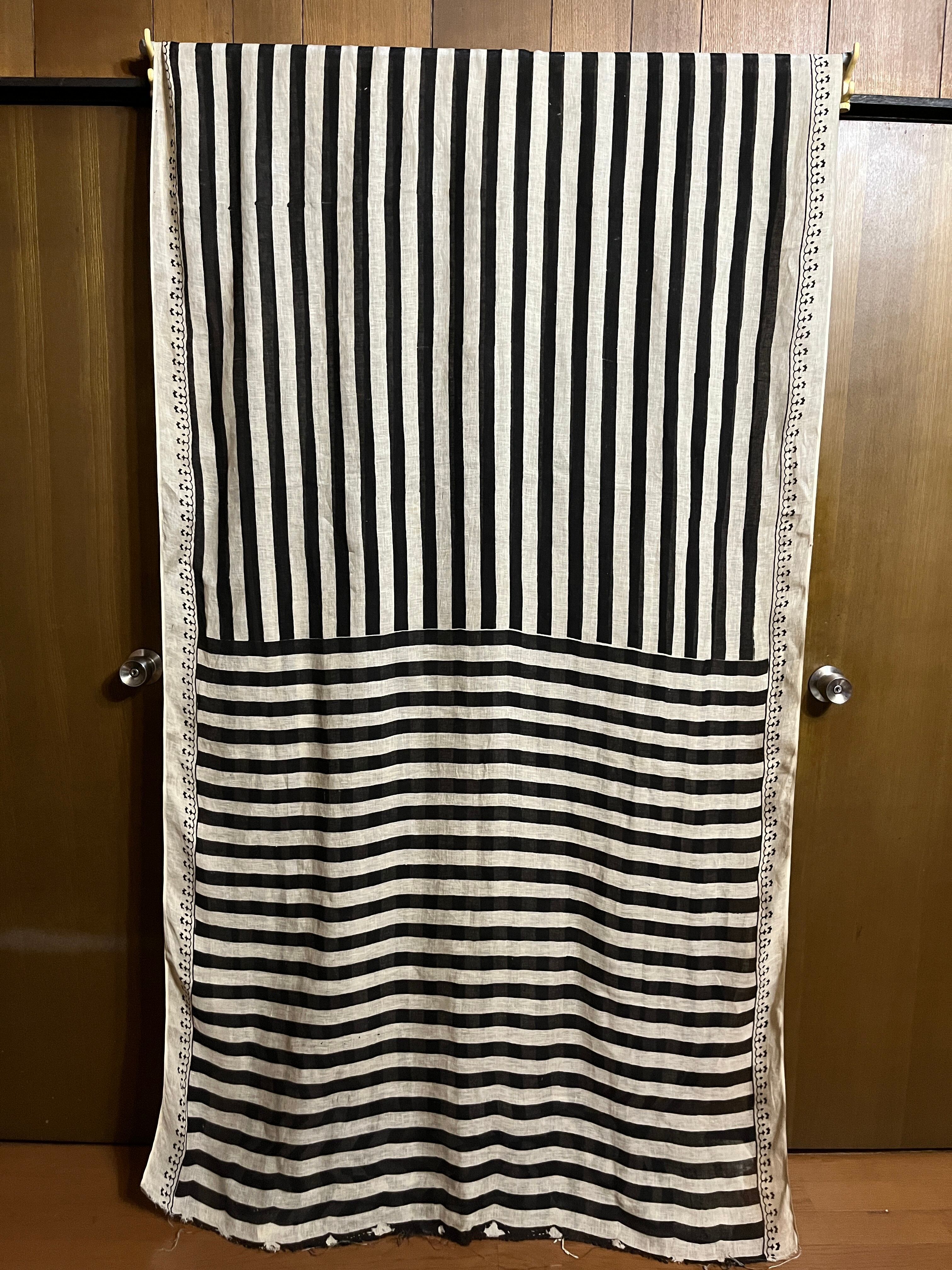【インド】ブロックプリント麻ボーダーサリー⭐︎送料無料
